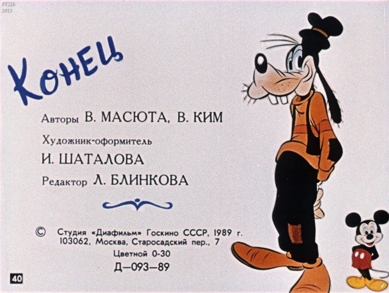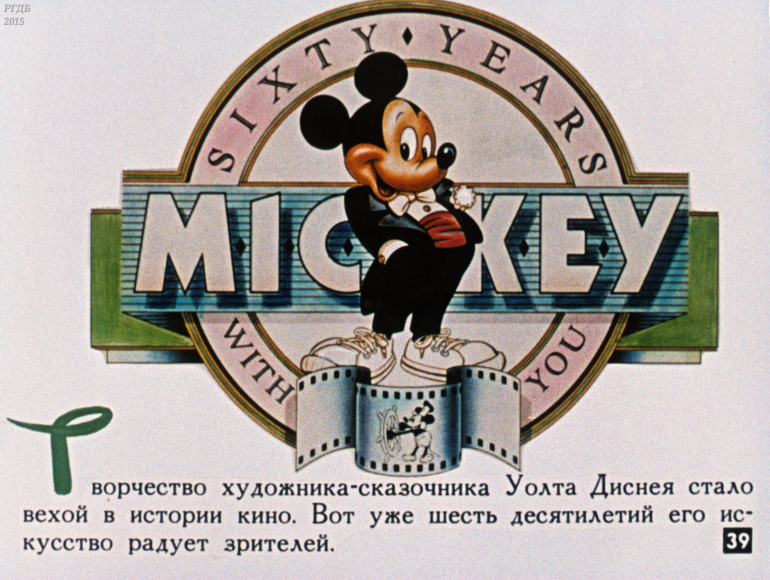 Мир Уолта Диснея 0 Категория: ДиафильмыПросмотры: 710 Диафильм "Мир Уолта Диснея".Студия "Диафильм" Госкино СССР, 1989 год. Д-093-89, цветной 0-30 копеек