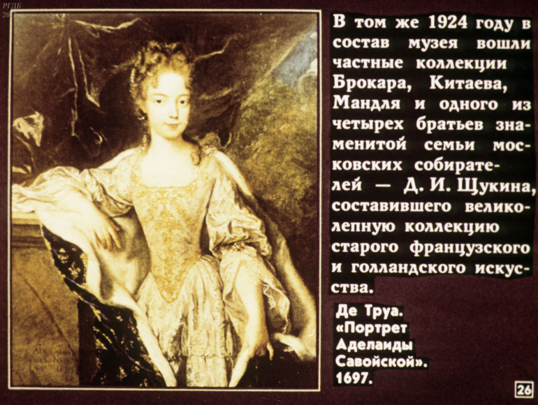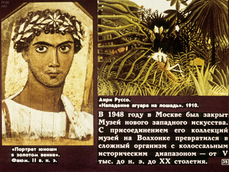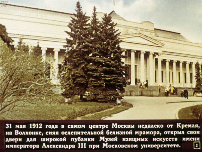 Музей изобразительных искусств им. А. С. Пушкина 0 Категория: ДиафильмыПросмотры: 611 Диафильм "Музей изобразительных искусств им. А. С. Пушкина". История отечественных музеевСтудия "Диафильм" Госкино СССР, 1971 год. Д-114-90, цветной