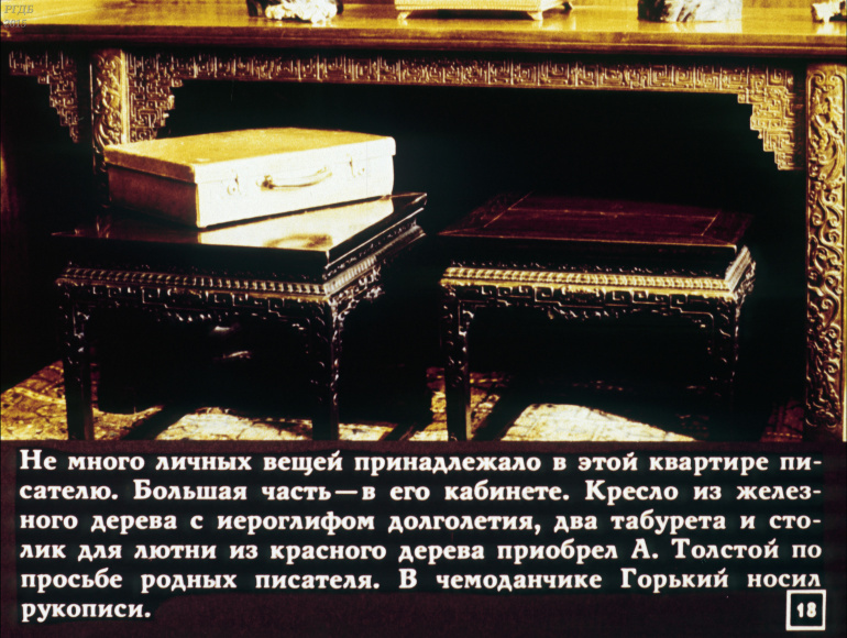 Музей-квартира А. М. Горького в Москве 2 Категория: ДиафильмыПросмотры: 634 Диафильм "Музей-квартира А. М. Горького в Москве".Студия "Диафильм" Госкино СССР, 1988 год. Д-013-88, цветной