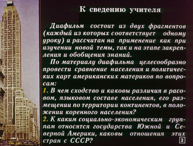 Население и политическая карта Южной и Северной Америки 0 Категория: ДиафильмыПросмотры: 697 Диафильм "Население и политическая карта Южной и Северной Америки".Студия "Диафильм" Госкино СССР, 1988 год. Д-099-88, цветной 0-80 копеек