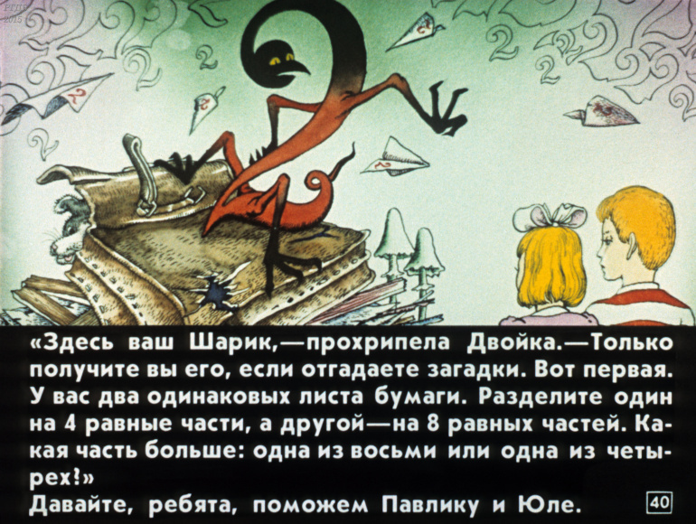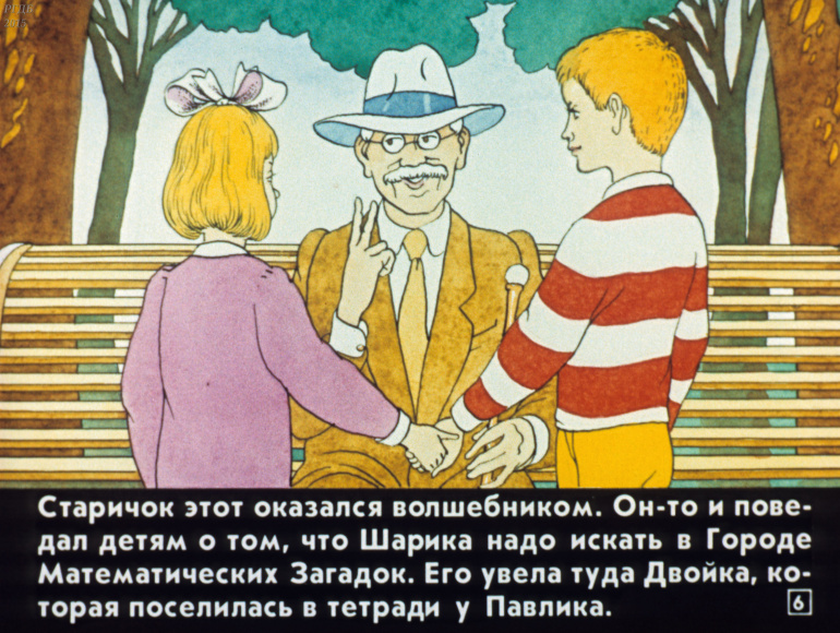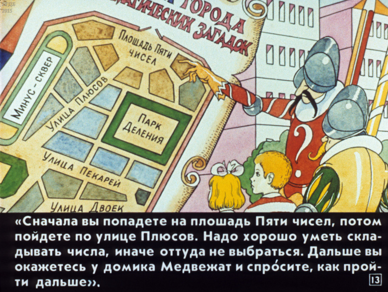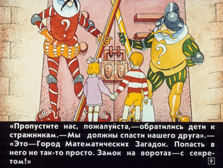 Необыкновенные приключения в городе математических загадок 0 Категория: ДиафильмыПросмотры: 544 Диафильм для 1-го класса "Необыкновенные приключения в городе математических загадок".Студия "Диафильм" Госкино СССР, 1990 год. Д-211-90, цветной 0-80 копеек