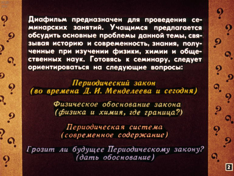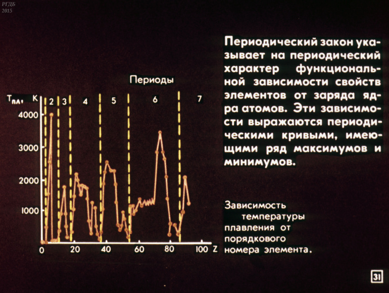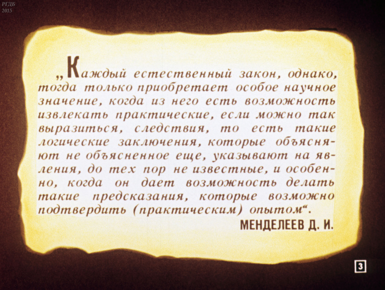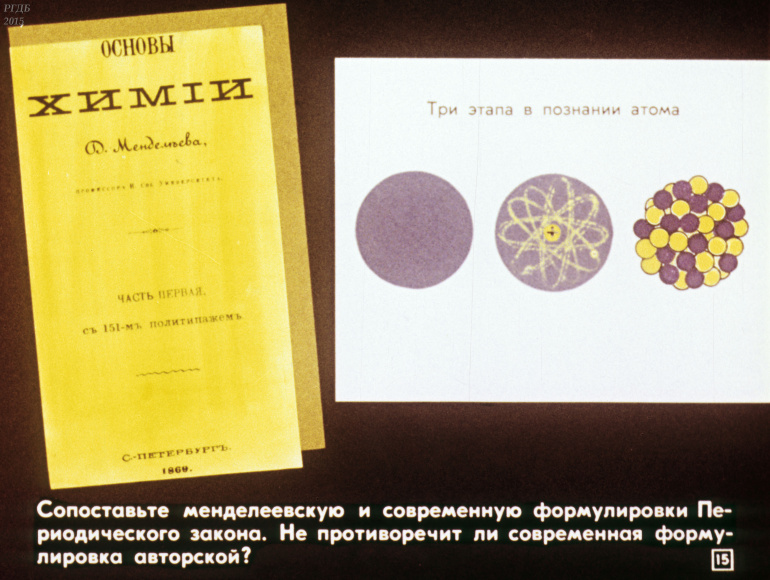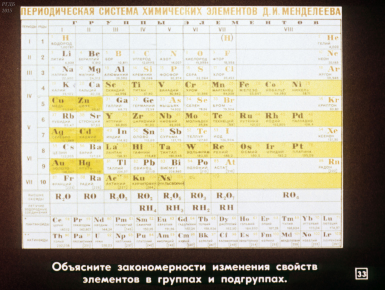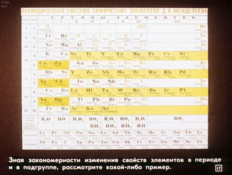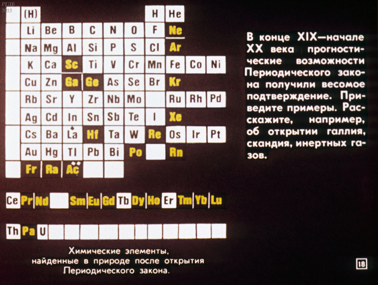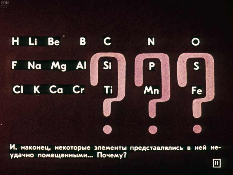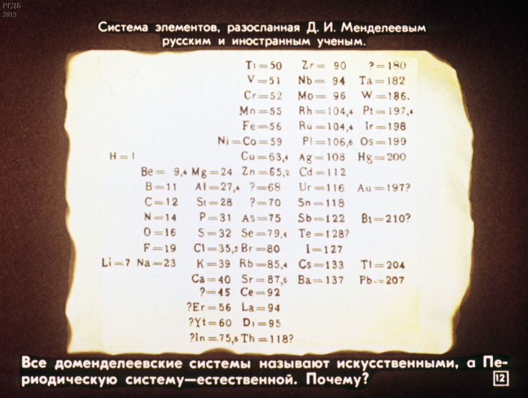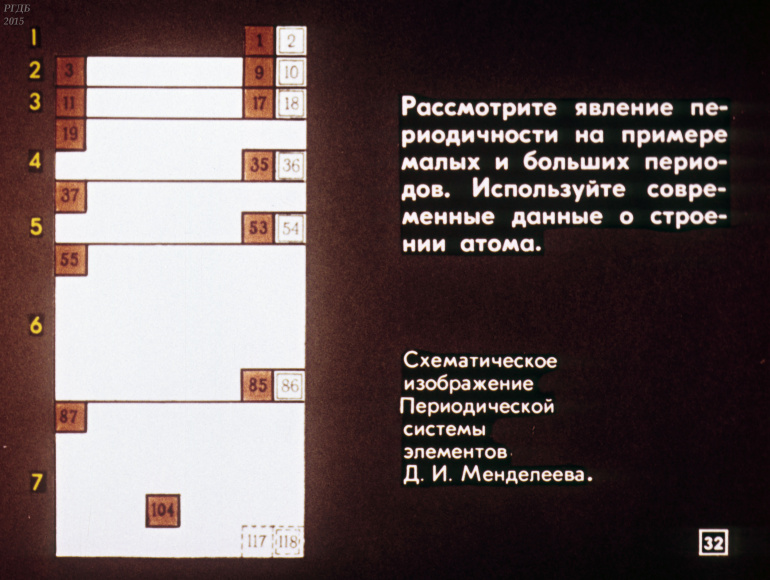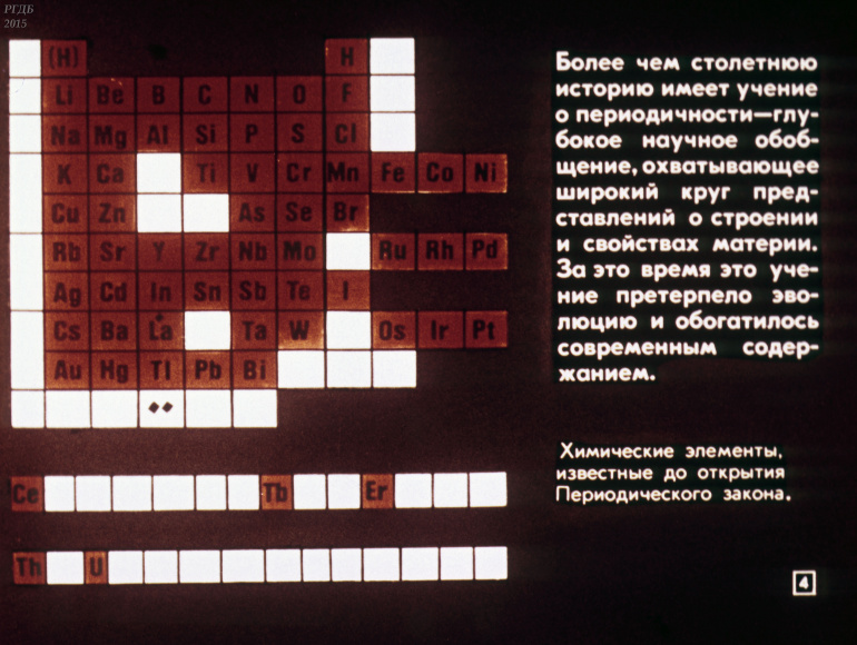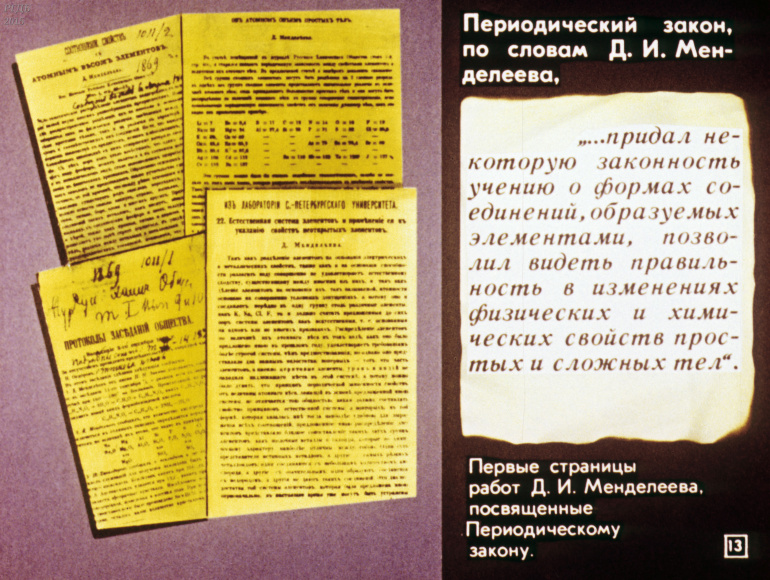 Периодический закон и периодическая система Менделеева 0 Категория: ДиафильмыПросмотры: 475 Диафильм "Периодический закон и периодическая система химических элементов Менделеева".Студия "Диафильм" Госкино СССР, 1987 год. Д-157-87, цветной