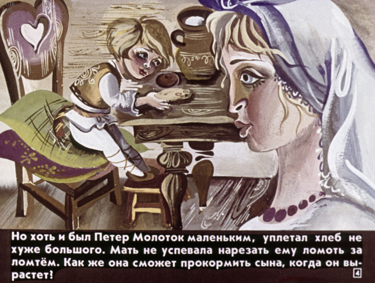 Петер-молоток 0 Категория: ДиафильмыПросмотры: 448 Диафильм "Петер-молоток". Словенская народная сказкаСтудия "Диафильм" Госкино СССР, 1989 год. Д-058-89, цветной 0-30 копеек