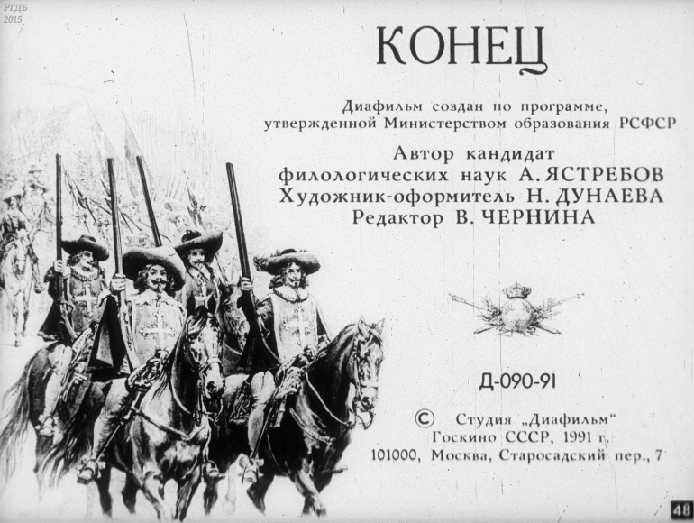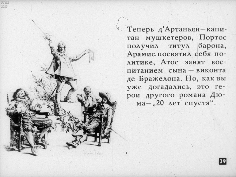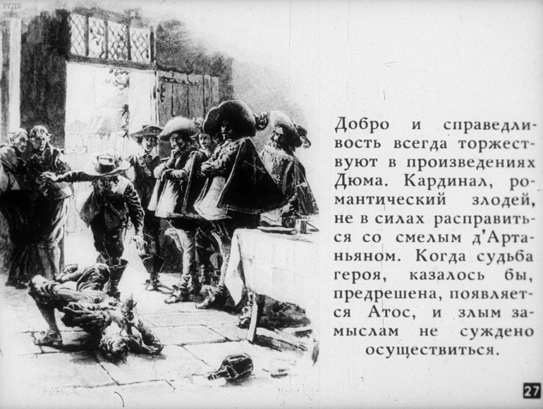 По страницам книг А. Дюма 0 Категория: ДиафильмыПросмотры: 413 Диафильм по литературе "По страницам книг А. Дюма".Студия "Диафильм" Госкино СССР, 1991 год. Д-090-91, черно-белый
