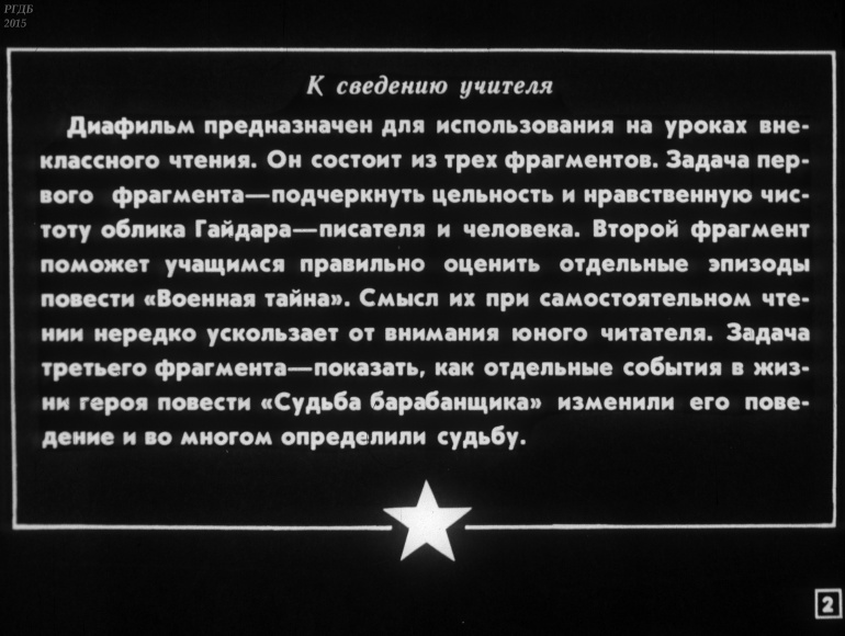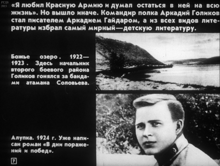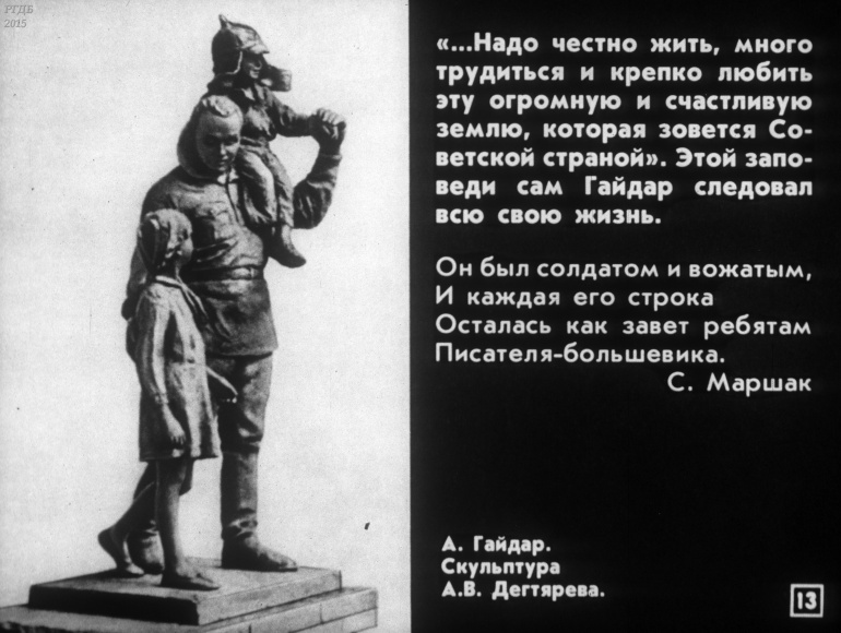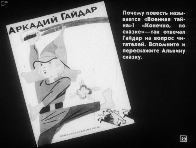Повести А. П. Гайдара 0 Категория: ДиафильмыПросмотры: 444 Диафильм по литературе "Повести А. П. Гайдара".Студия "Диафильм" Госкино СССР, 1988 год. Д-101-88, черно-белый
