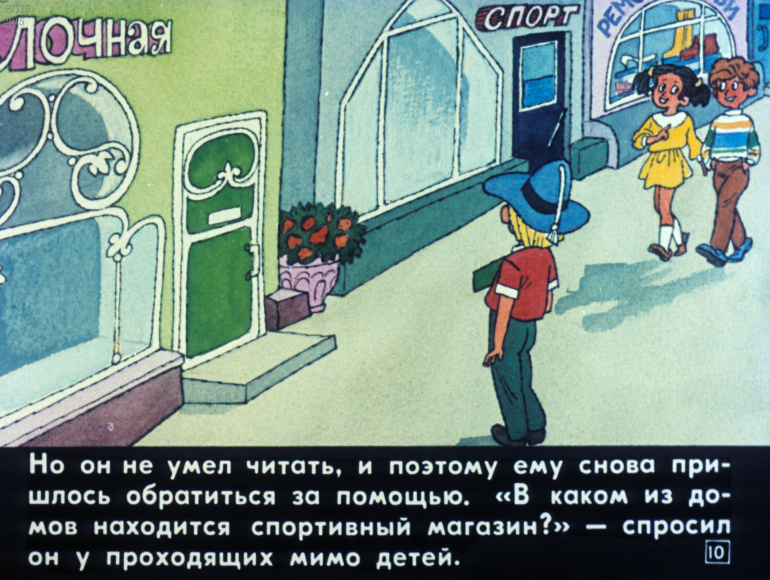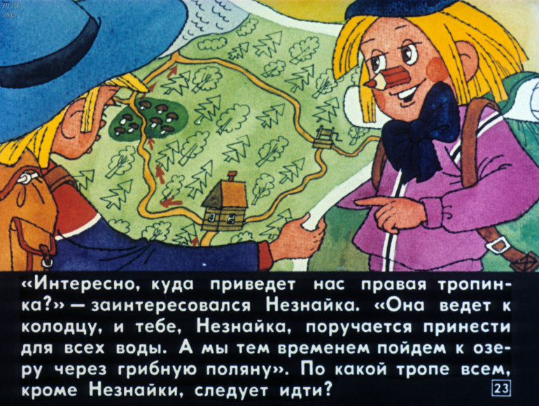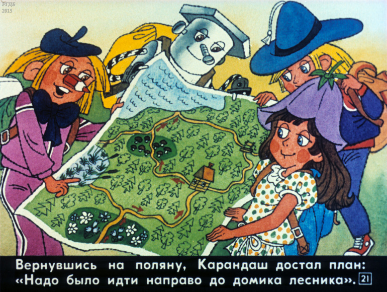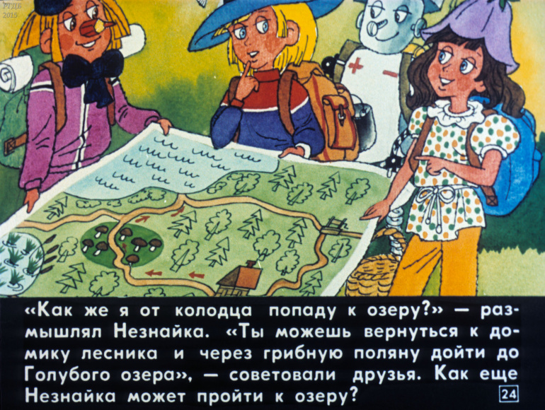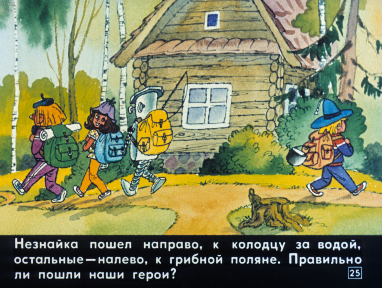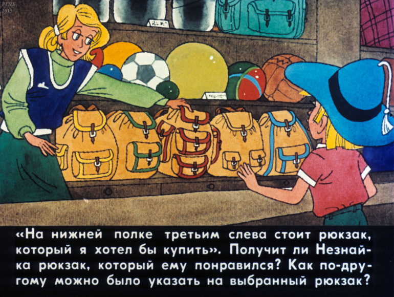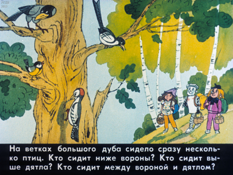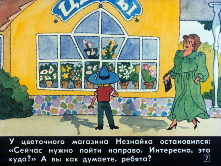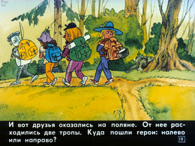 Диафильм для детей старшего дошкольного возраста предназначен для формирования наглядно-пространственных представлений. Он научит использовать пространственные ориентиры и определять местоположение объектов относительно друг друга.