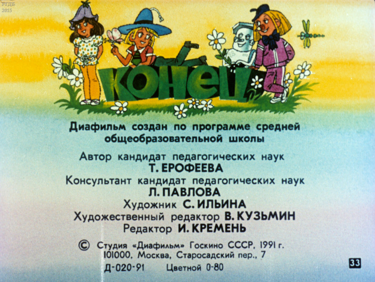Студия "Диафильм" Госкино СССР, 1991 год.
