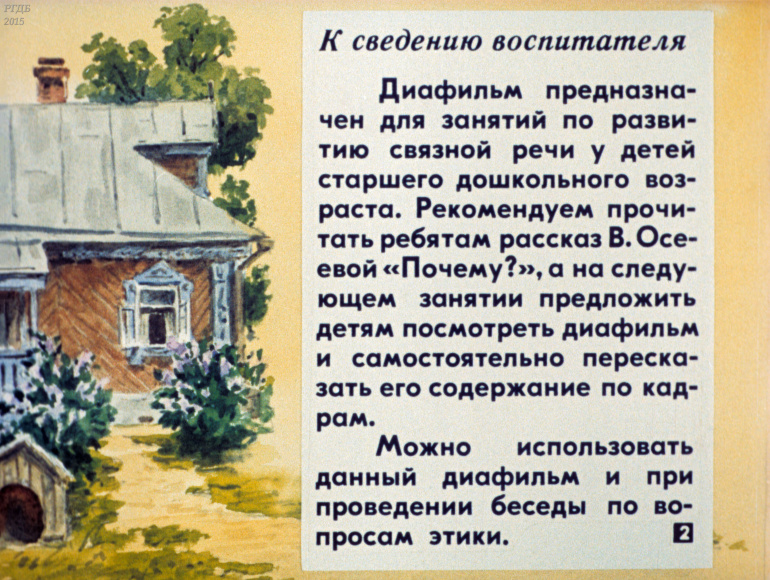Почему 2 Категория: ДиафильмыПросмотры: 600 Диафильм "Почему". По рассказу В. ОсеевойСтудия "Диафильм" Госкино СССР, 1989 год. Д-012-89, цветной 0-30 копеек