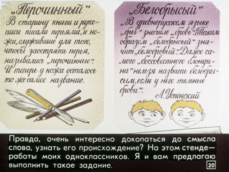 Почему мы так говорим 2 Категория: ДиафильмыПросмотры: 503 Диафильм "Почему мы так говорим". К урокам русского языкаСтудия "Диафильм" Госкино СССР, 1987 год. Д-253-87, цветной 0-30 копеек