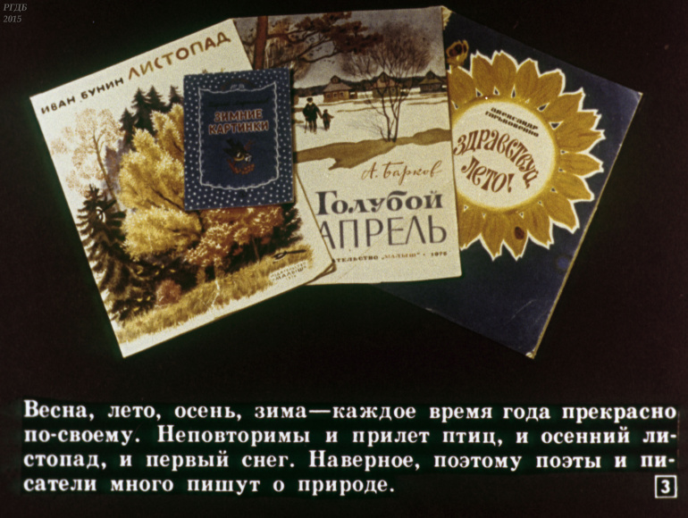 Поэты и писатели о временах года 0 Категория: ДиафильмыПросмотры: 421 Диафильм "Поэты и писатели о временах года".Студия "Диафильм" Госкино СССР, 1990 год. Д-076-90, цветной