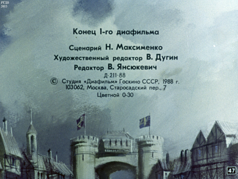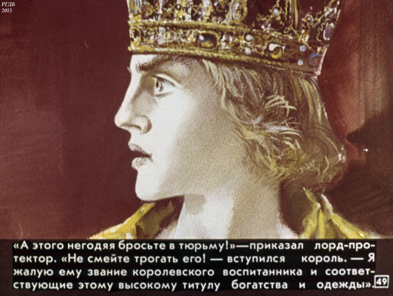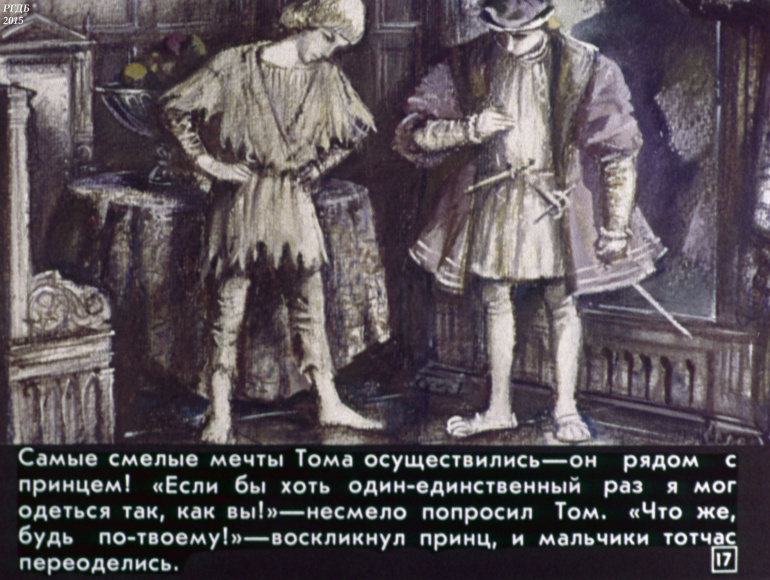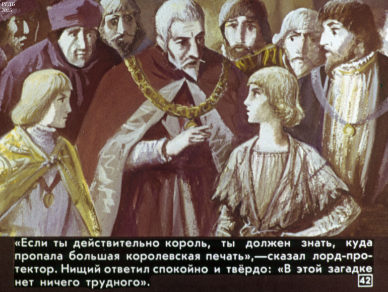Принц и нищий, версия 1988 года 0 Категория: ДиафильмыПросмотры: 465 По роману Марка Твена. Диафильм "Принц и нищий". В двух частяхСтудия "Диафильм" Госкино СССР, 1988 год. Д-211-88, Д-212-88, цветные 0-30 копеек