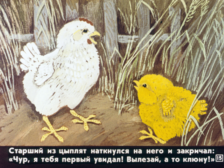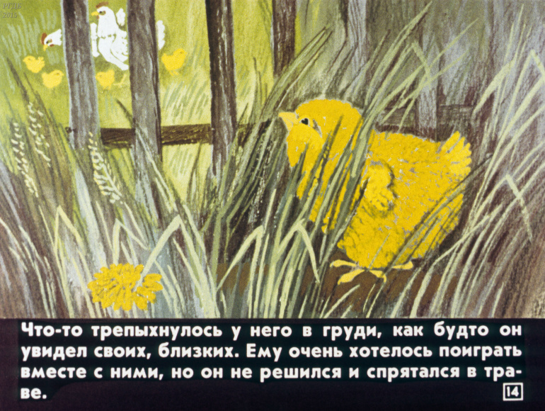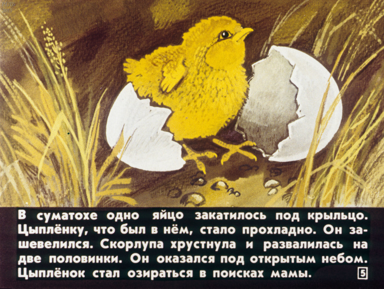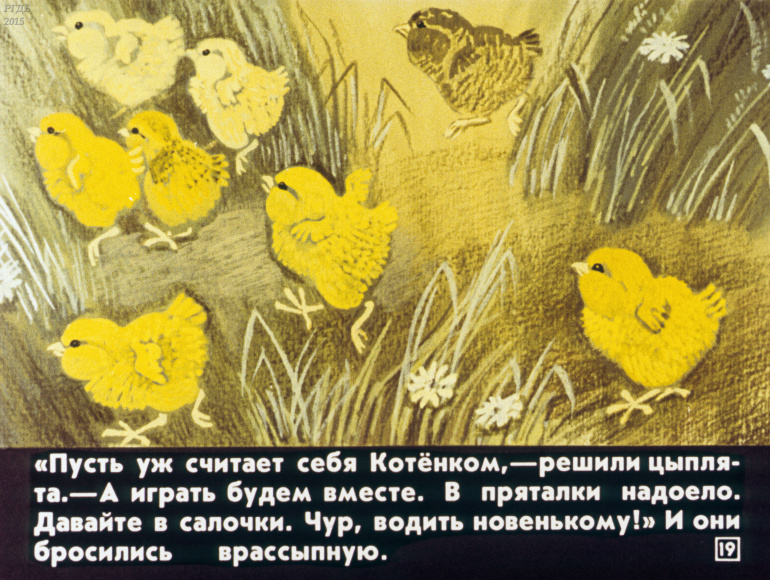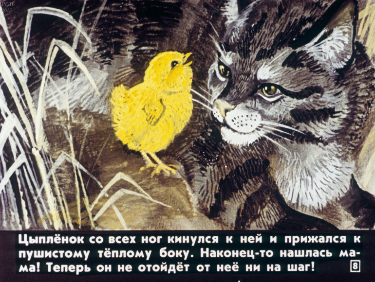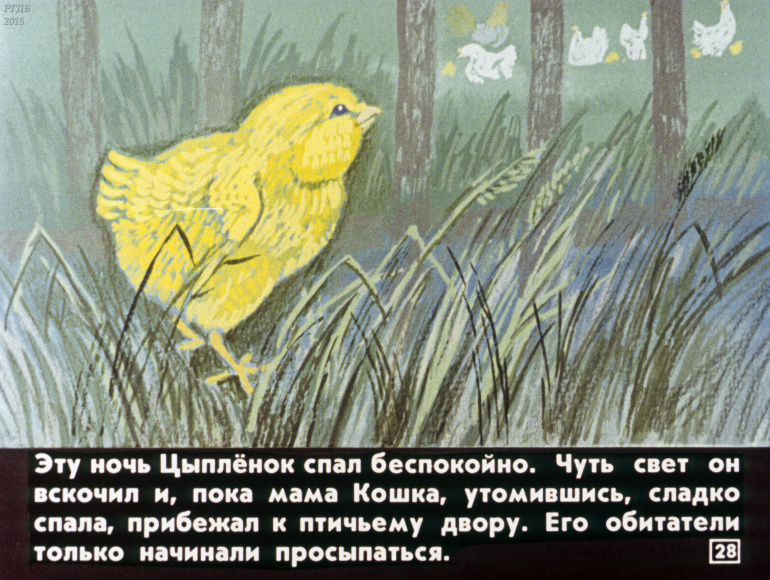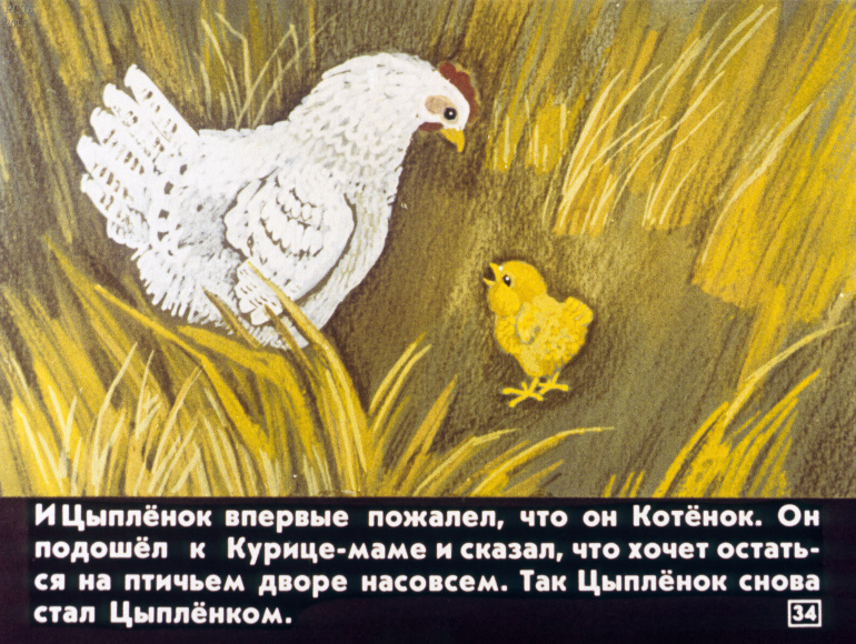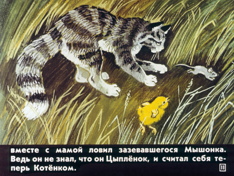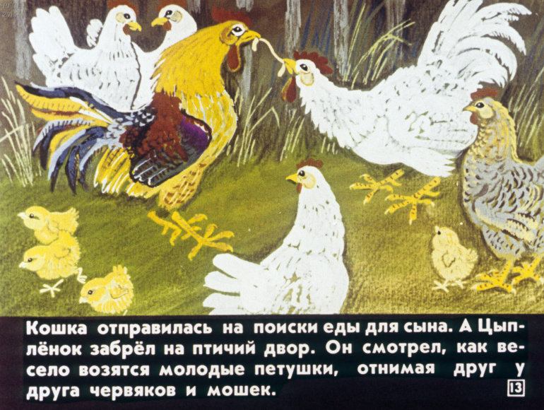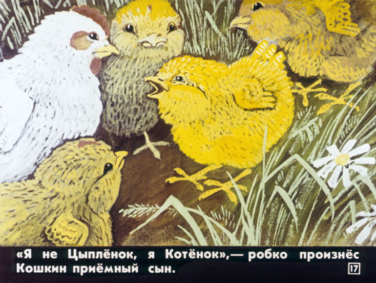 Про цыпленка, который думал, что он котенок 0 Категория: ДиафильмыПросмотры: 477 Е. Сапарина. Диафильм "Про цыпленка, который думал, что он котенок".Студия "Диафильм" Госкино СССР, 1989 год. Д-010-89, цветной 0-30 копеек