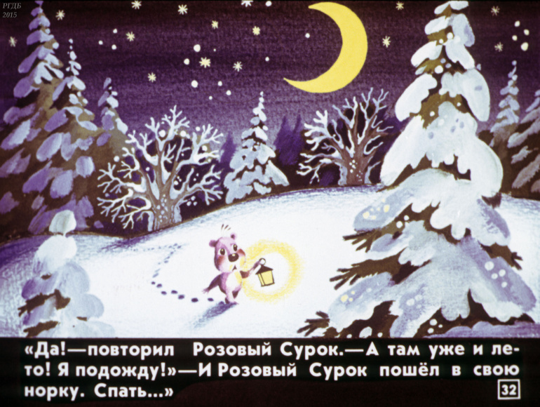 Розовый сурок 5 Категория: ДиафильмыПросмотры: 747 Дина Непомнящая. Диафильм "Розовый сурок".Студия "Диафильм" Госкино СССР, 1988 год. Д-134-88, цветной 0-30 копеек