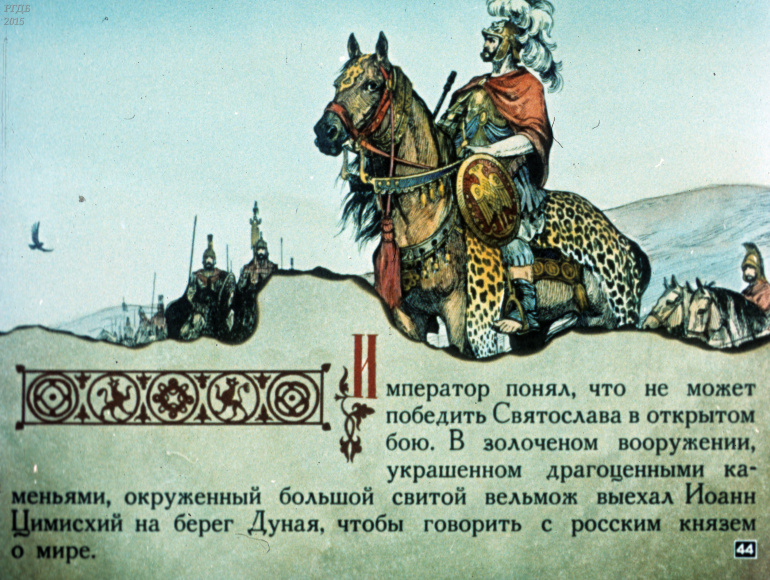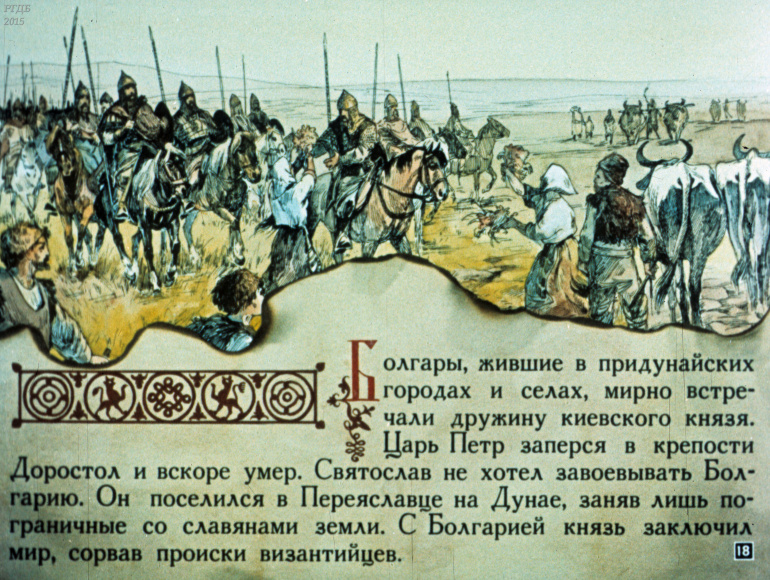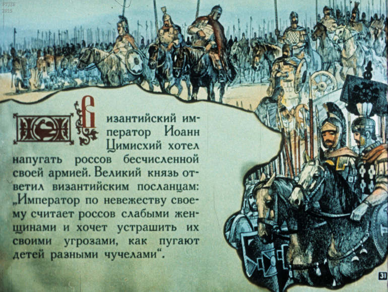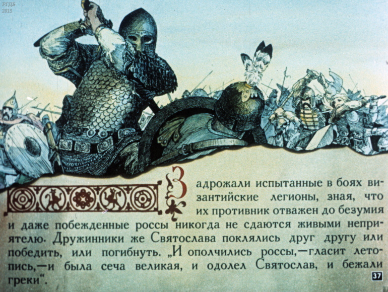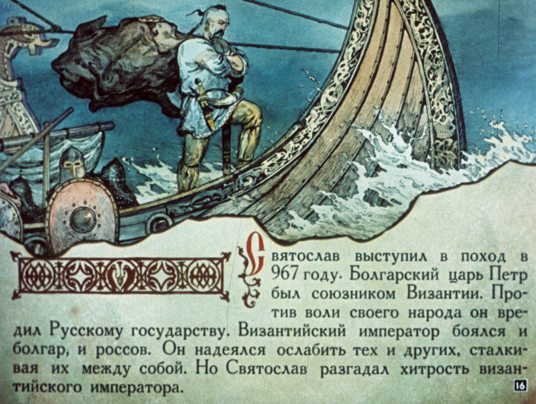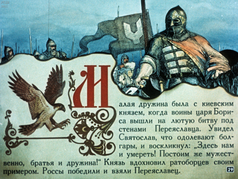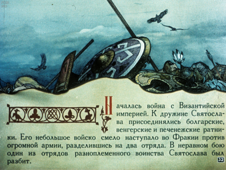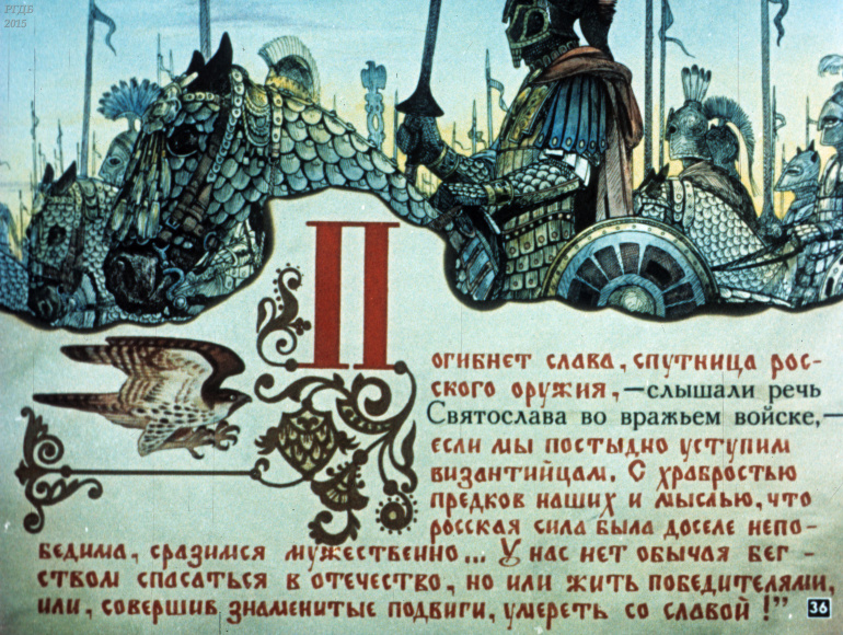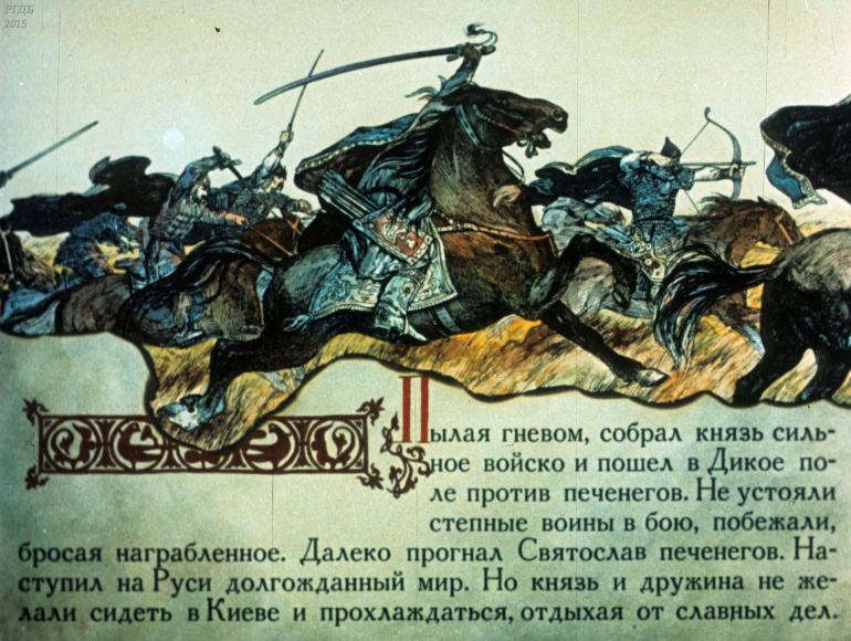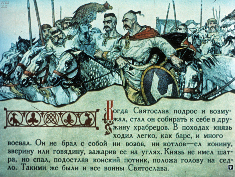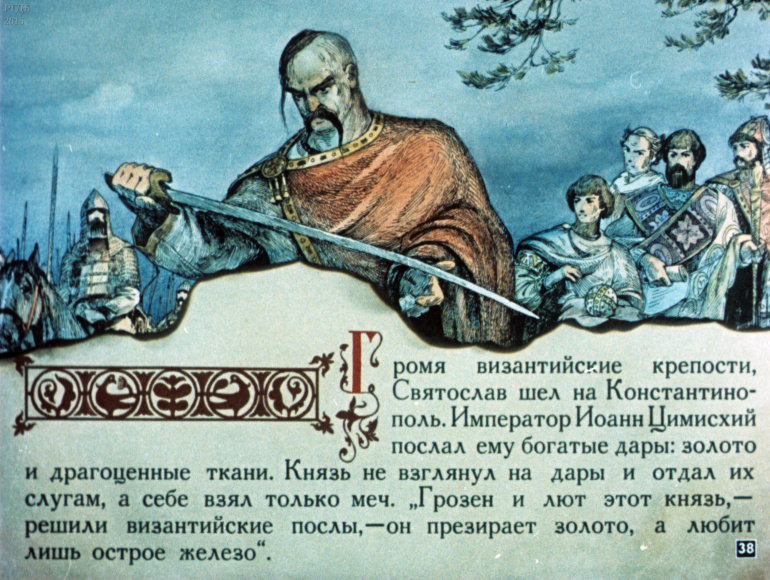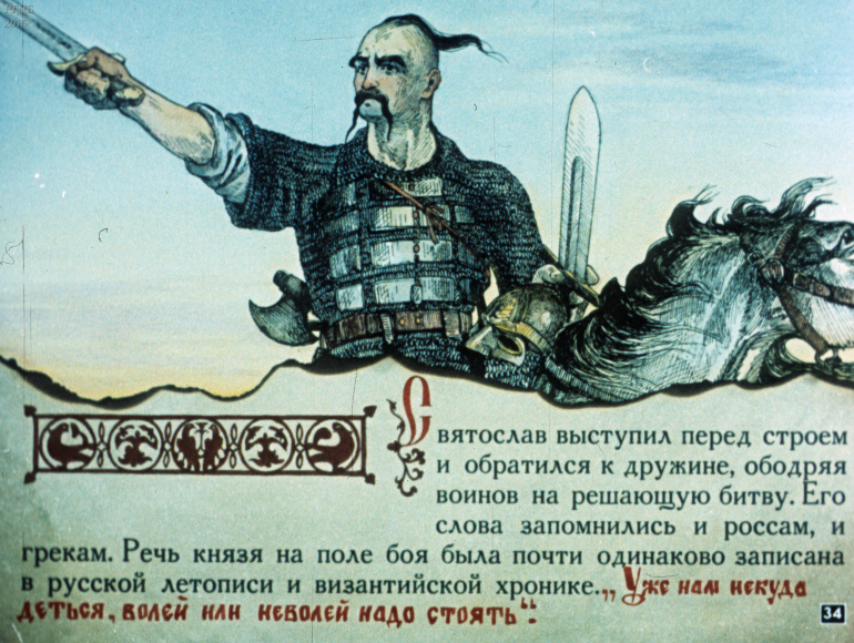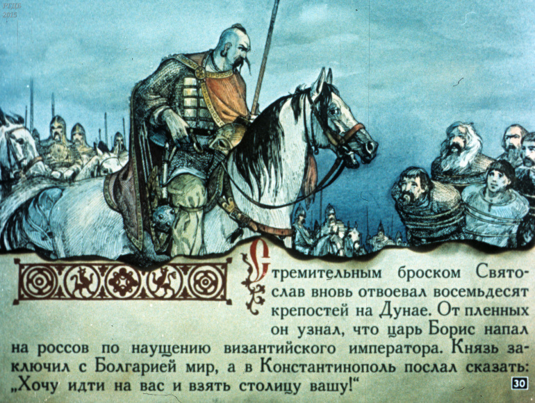 Святослав 1 Категория: ДиафильмыПросмотры: 533 Диафильм "Святослав". Из серии "Полководцы Древней Руси"Студия "Диафильм" Госкино СССР, 1990 год. Д-100-90, цветной