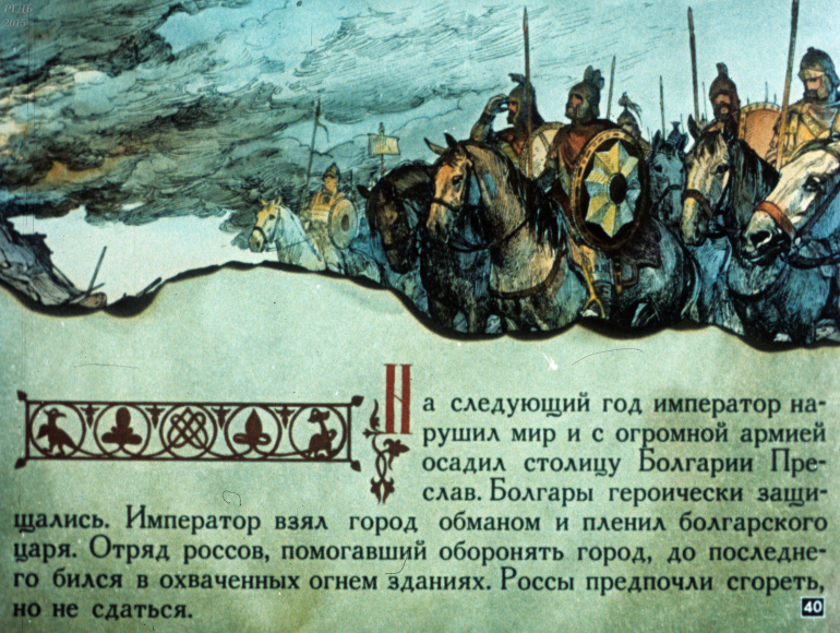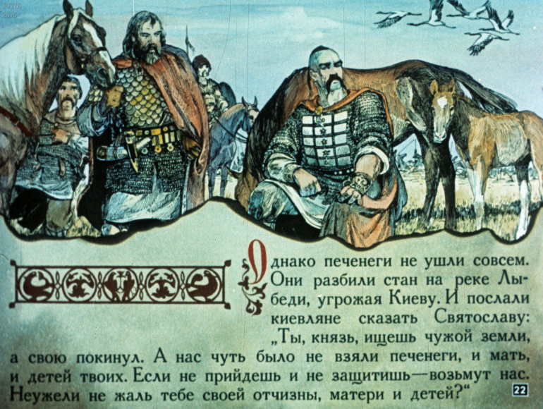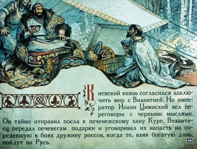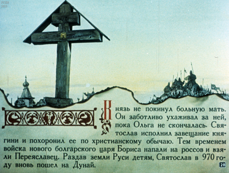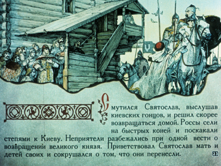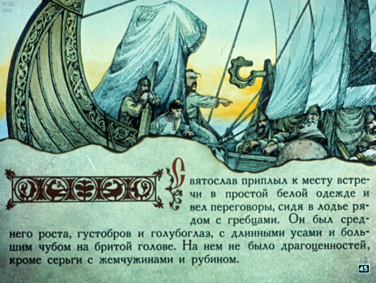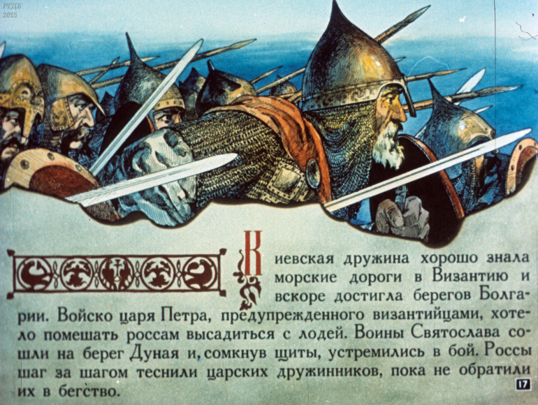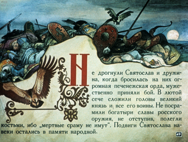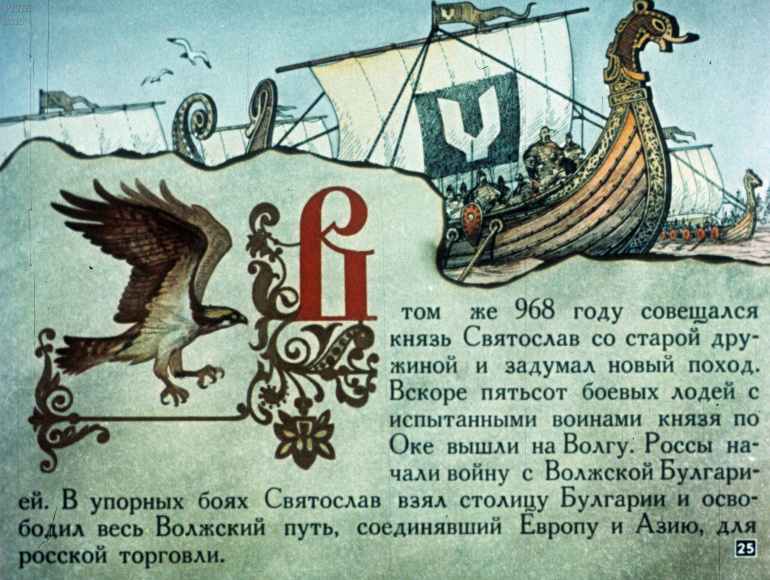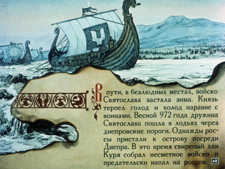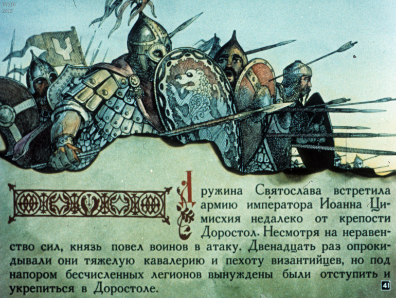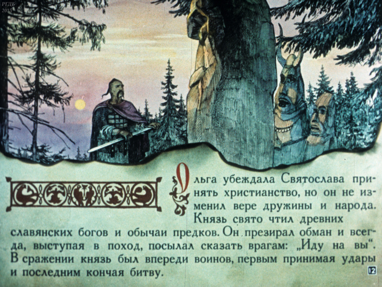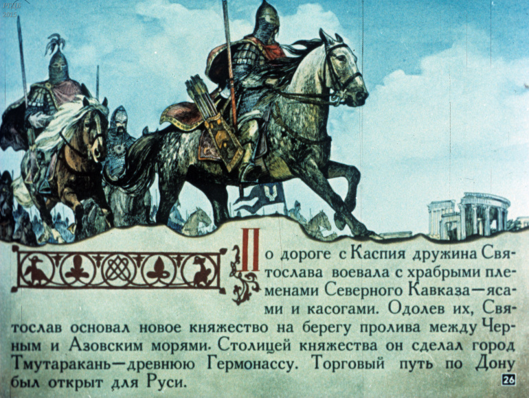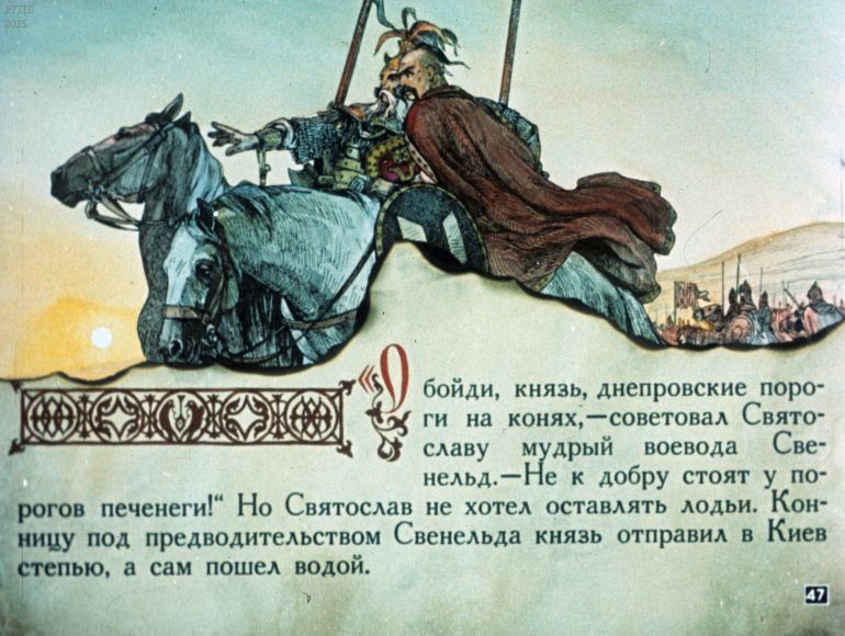Святослав 1 Категория: ДиафильмыПросмотры: 533 Диафильм "Святослав". Из серии "Полководцы Древней Руси"Студия "Диафильм" Госкино СССР, 1990 год. Д-100-90, цветной
