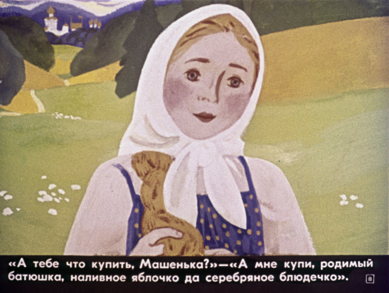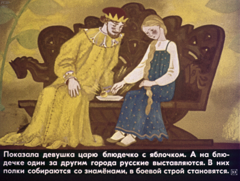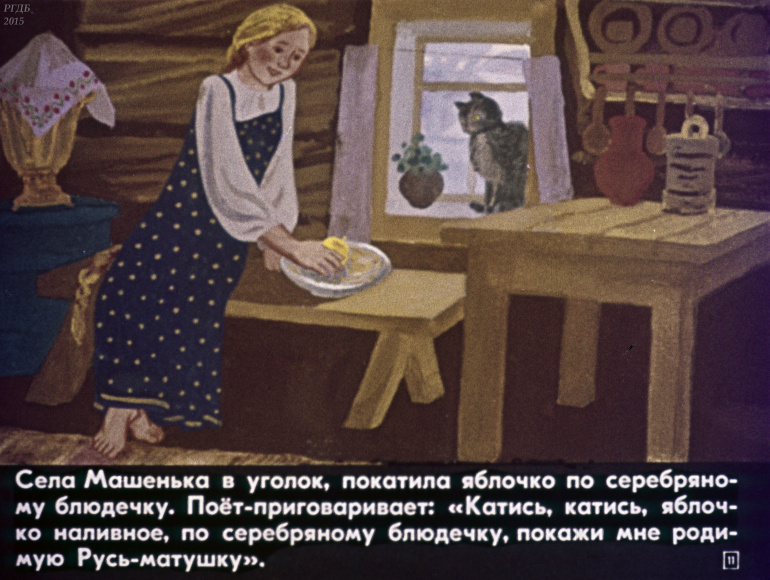 Серебряное блюдечко и наливное яблочко 0 Категория: ДиафильмыПросмотры: 545 Диафильм "Серебряное блюдечко и наливное яблочко". Русская народная сказкаСтудия "Диафильм" Госкино СССР, 1984 год. Д-087-84, цветной 0-30 копеек