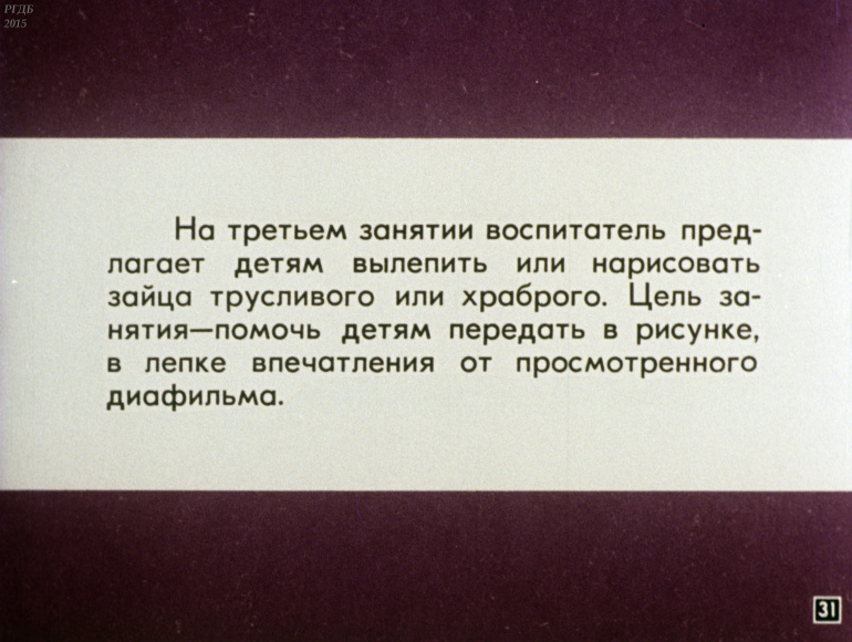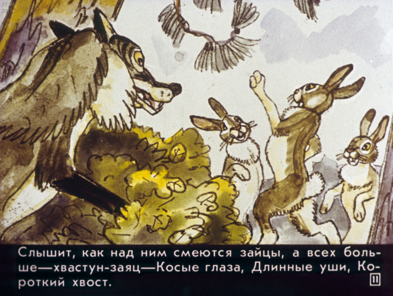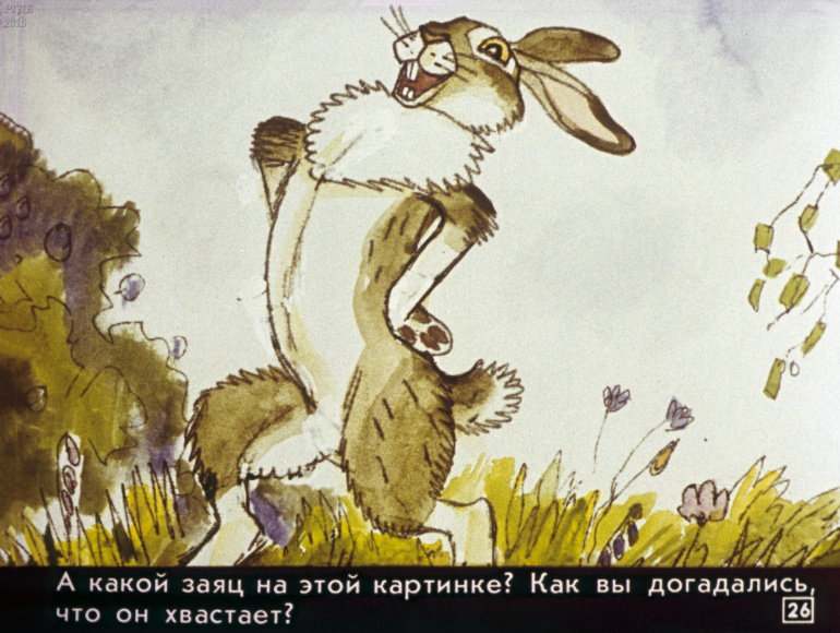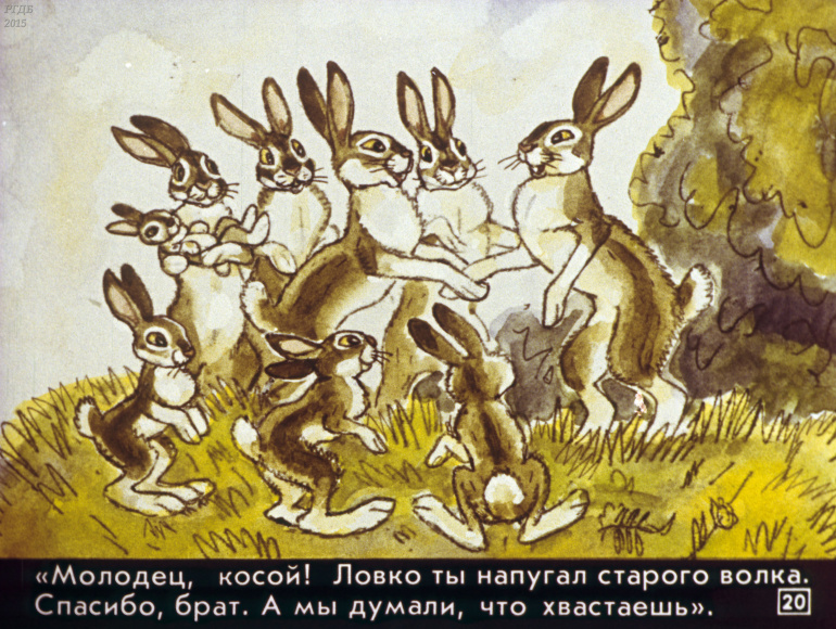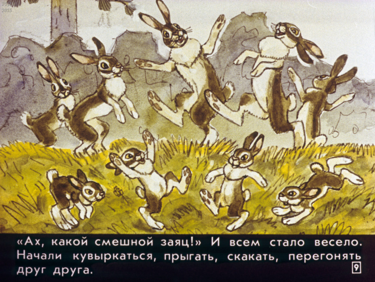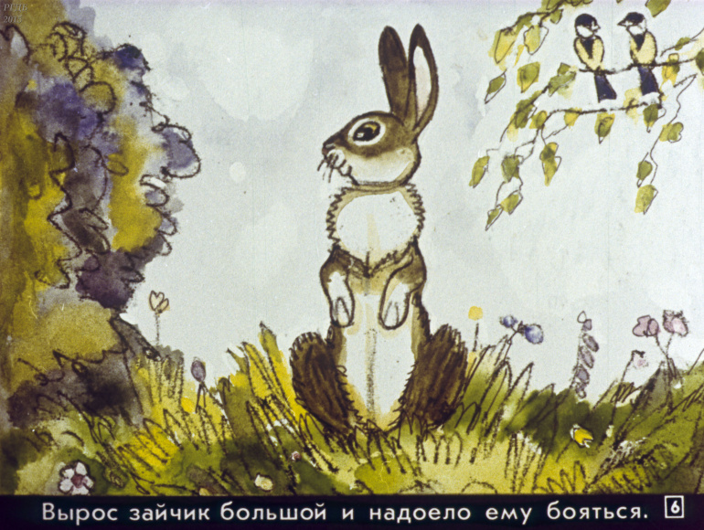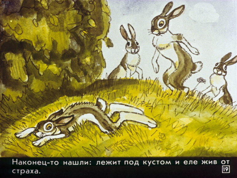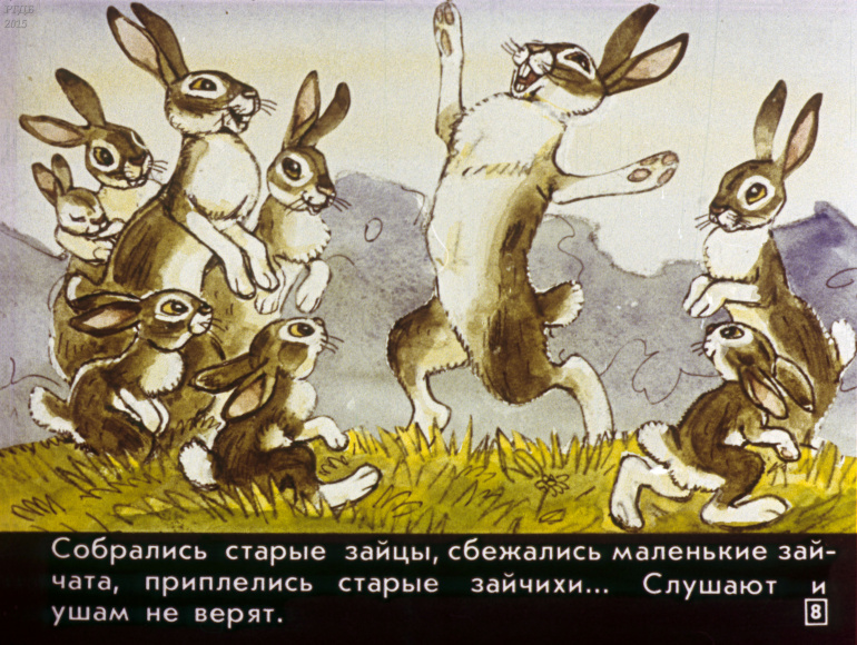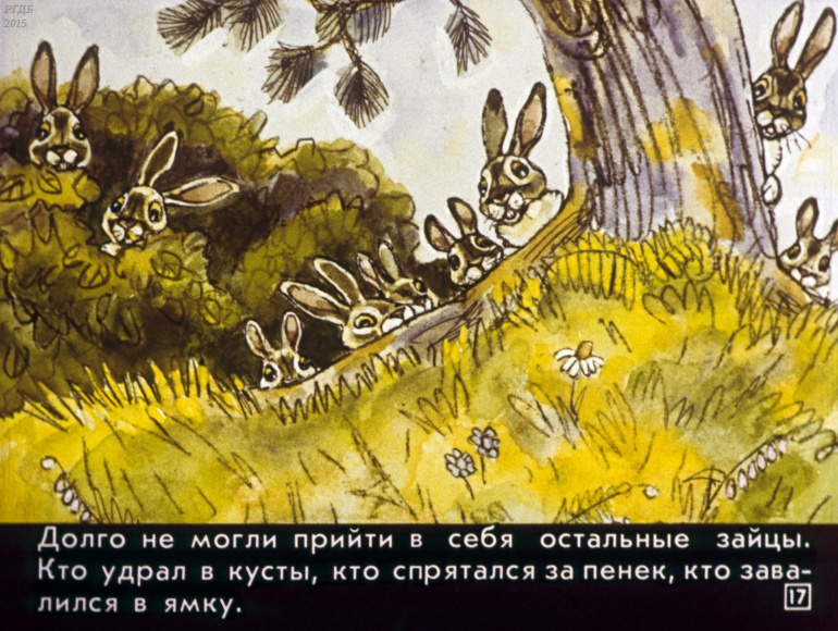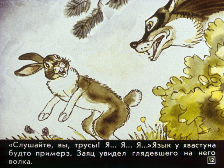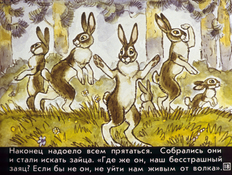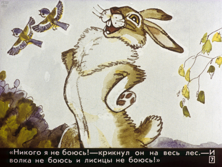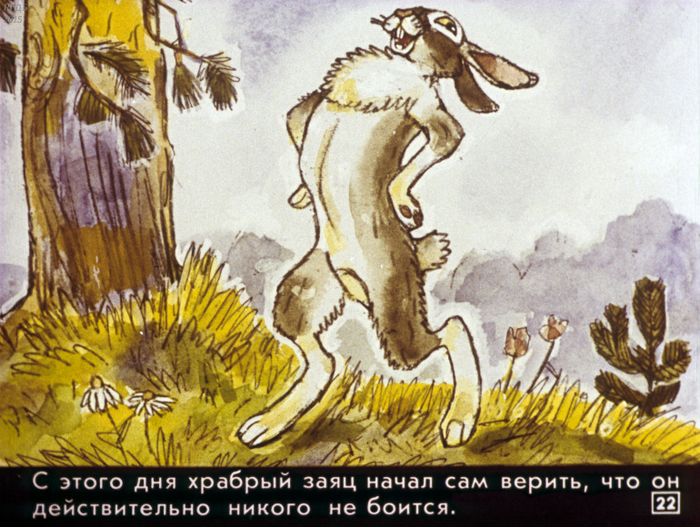 Сказка про храброго зайца 0 Категория: ДиафильмыПросмотры: 863 Диафильм для детских садов "Сказка про храброго зайца". По Д. Мамину-СибирякуСтудия "Диафильм" Госкино СССР, 1988 год. Д-217-88, цветной 0-30 копеек
