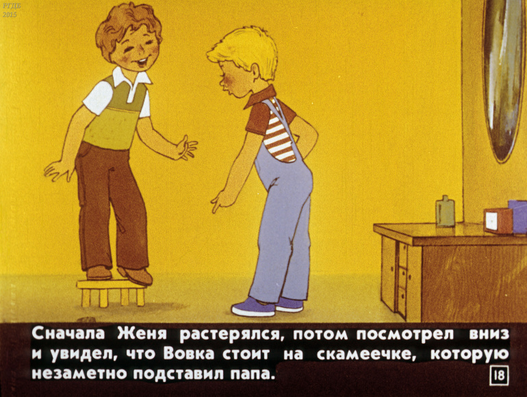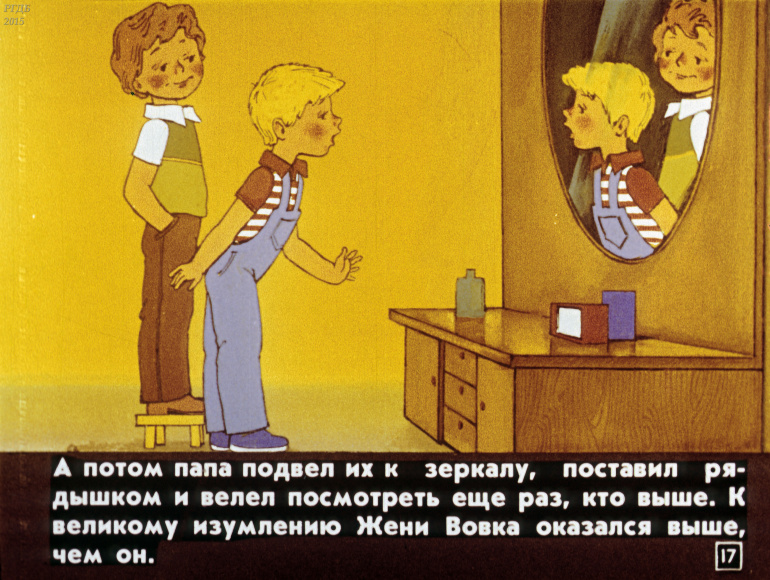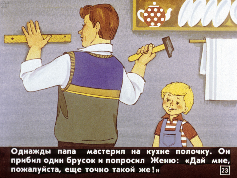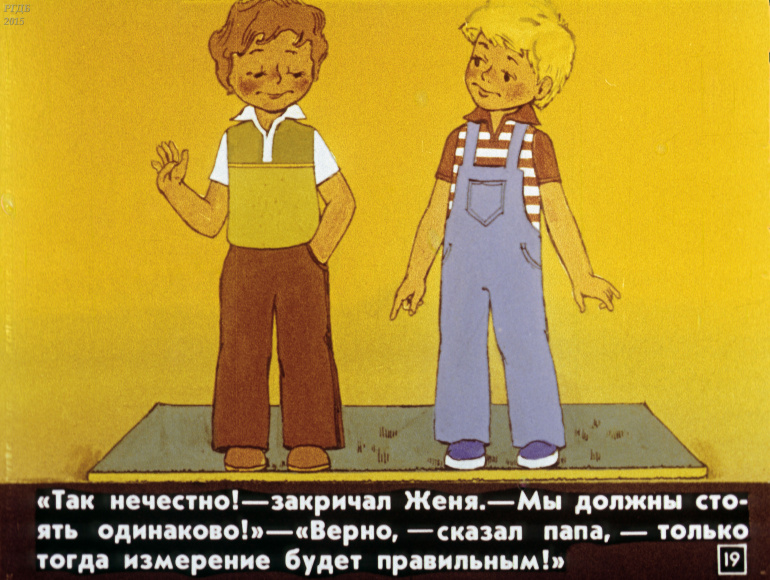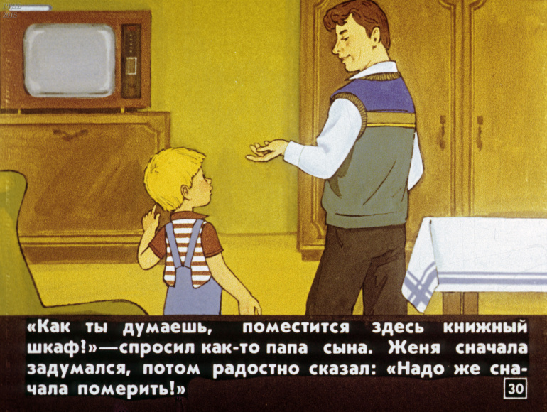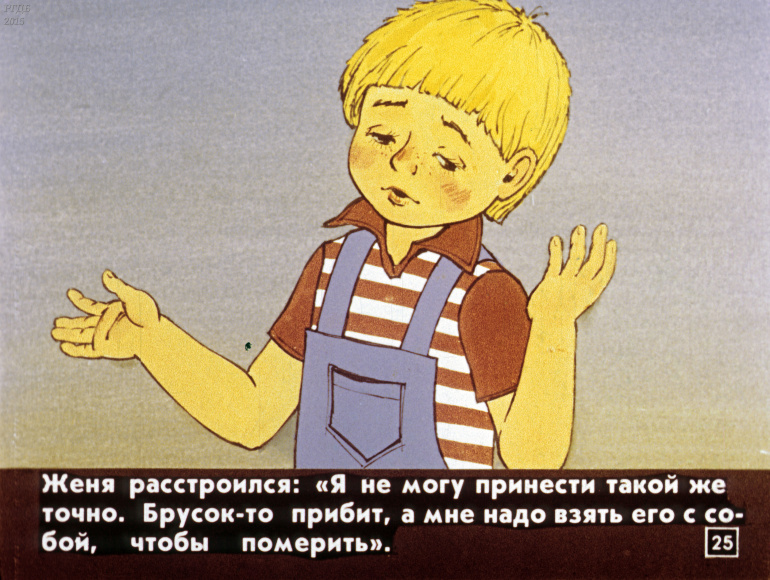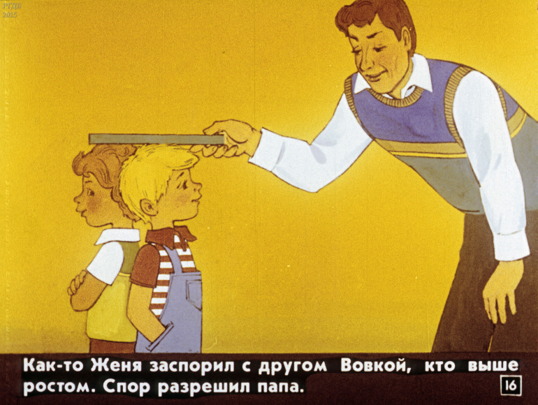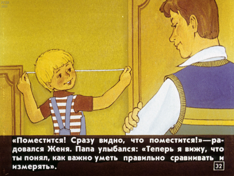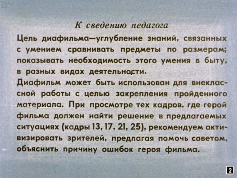 Сравнение предметов по размерам 0 Категория: ДиафильмыПросмотры: 430 Диафильм "Сравнение предметов по размерам".Студия "Диафильм" Госкино СССР, 1986 год. Д-250-86, цветной 0-30 копеек