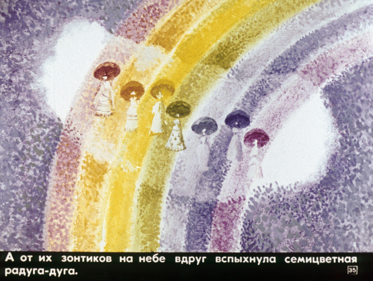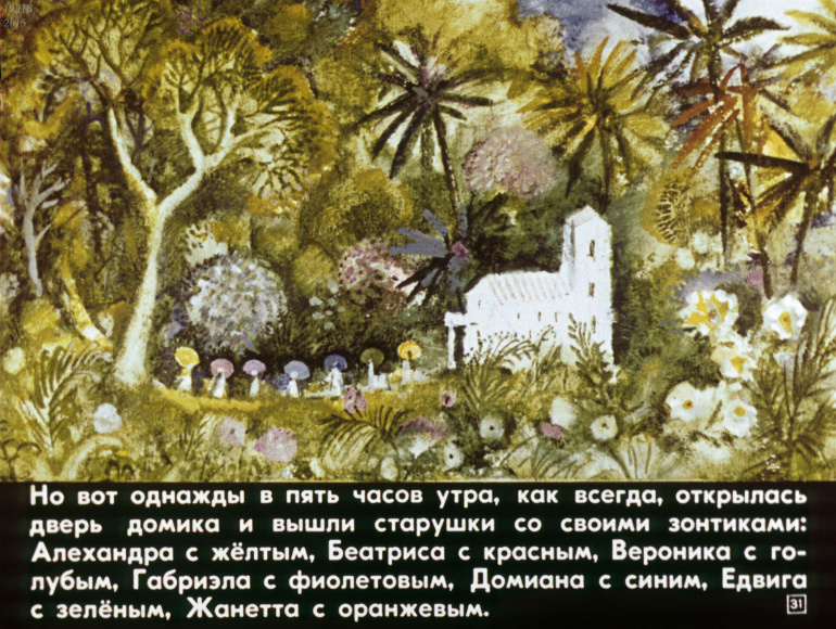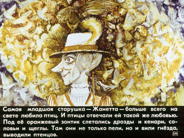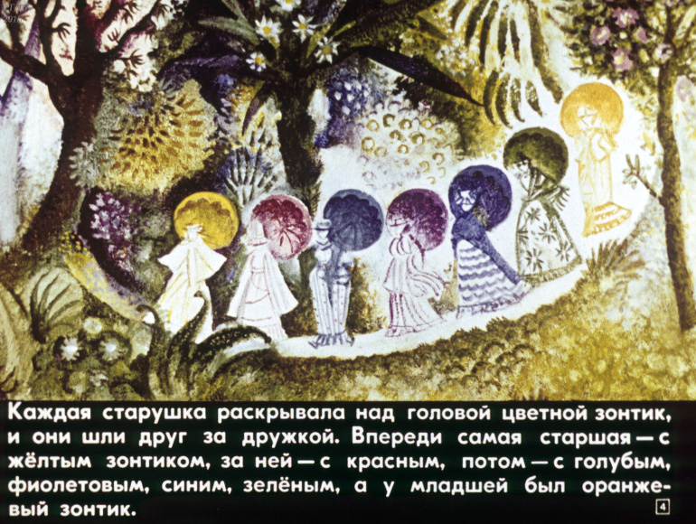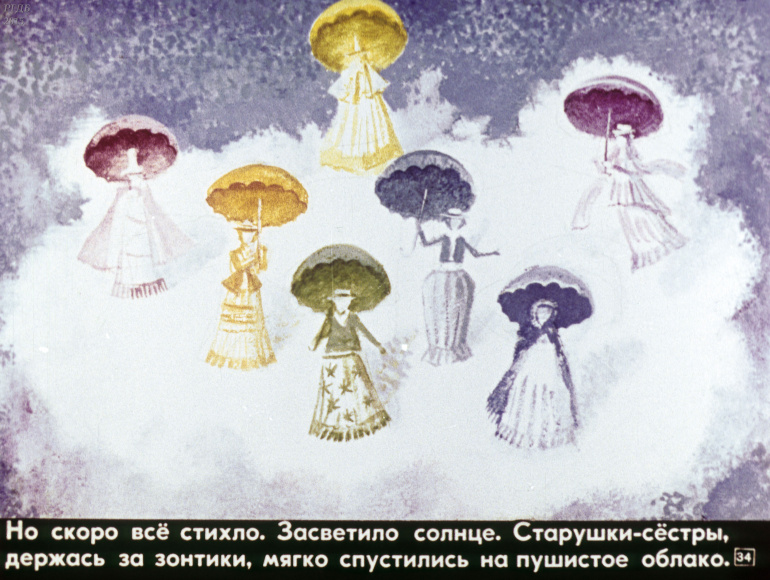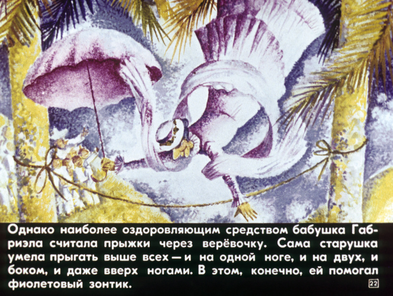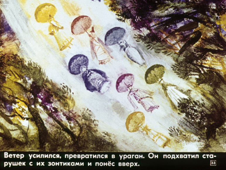 Старушки с зонтиками 0 Категория: ДиафильмыПросмотры: 506 Георгий Балл. Диафильм "Старушки с зонтиками". По мотивам кубинской сказкиСтудия "Диафильм" Госкино СССР, 1981 год. Д-086-81, цветной 0-30 копеек