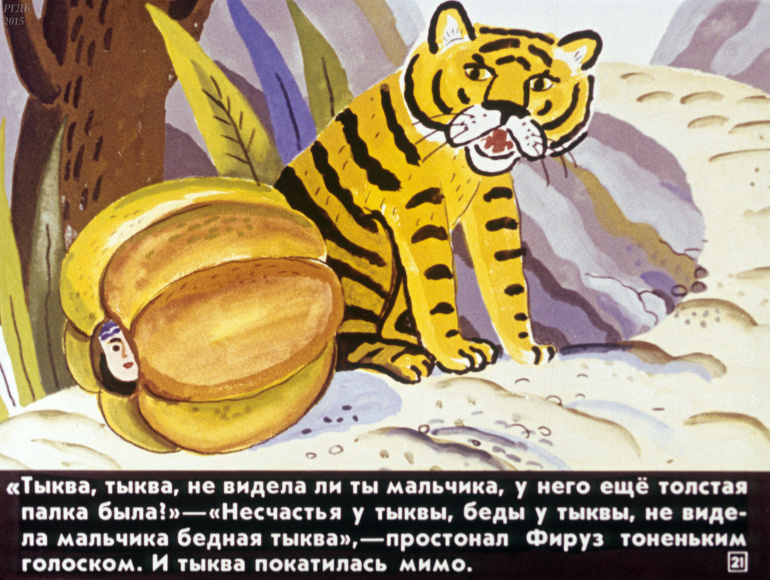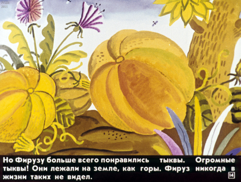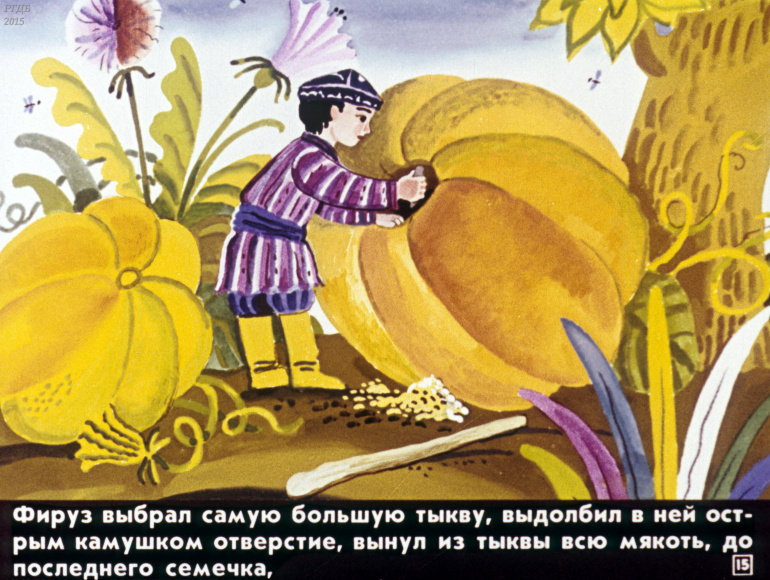 Тыква 0 Категория: ДиафильмыПросмотры: 415 Диафильм "Тыква". Таджикская народная сказкаСтудия "Диафильм" Госкино СССР, 1990 год. Д-015-90, цветной
