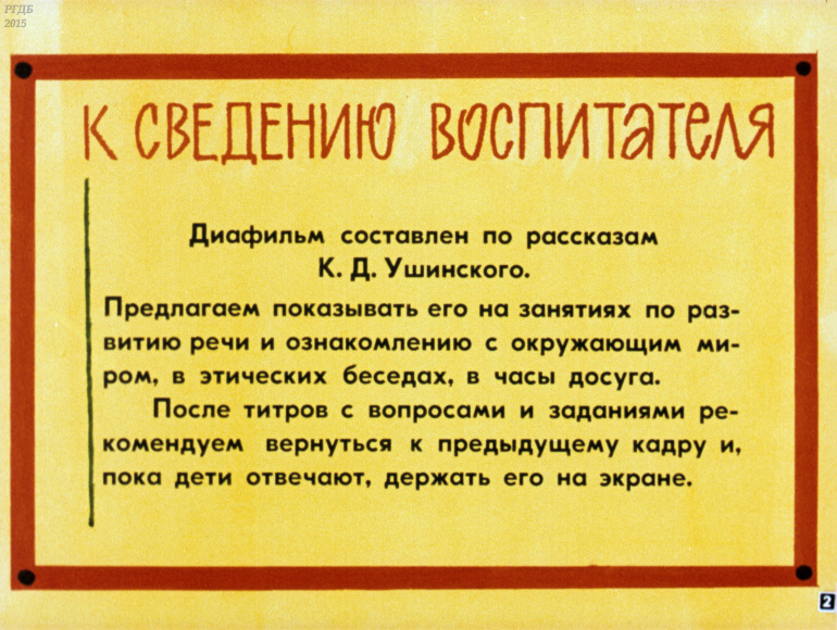 Ушинский - детям 0 Категория: ДиафильмыПросмотры: 625 Диафильм "Ушинский - детям".Студия "Диафильм" Госкино СССР, 1990 год. Д-183-90, цветной