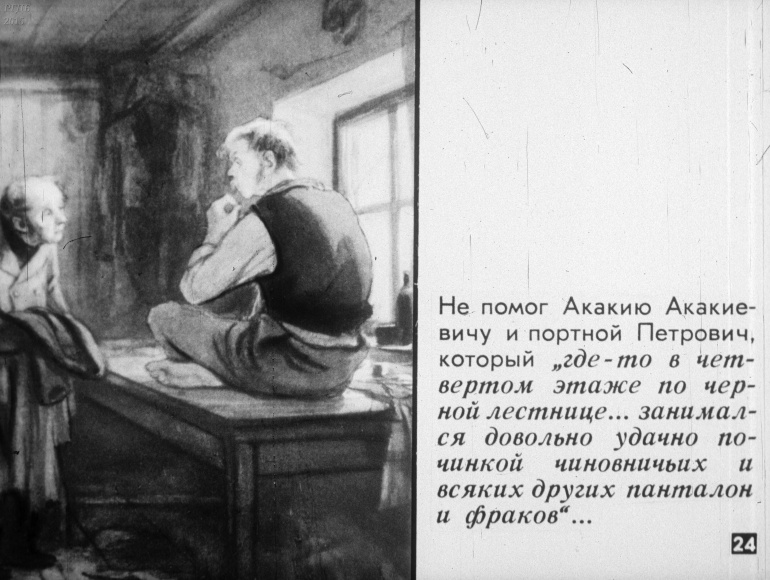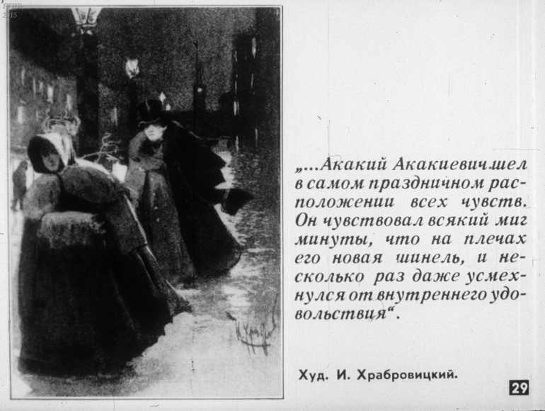 Шинель 1 Категория: ДиафильмыПросмотры: 572 Диафильм "Шинель". Из цикла петербургских повестей Н. В. ГоголяСтудия "Диафильм" Госкино СССР, 1990 год. Д-077-90, черно-белый