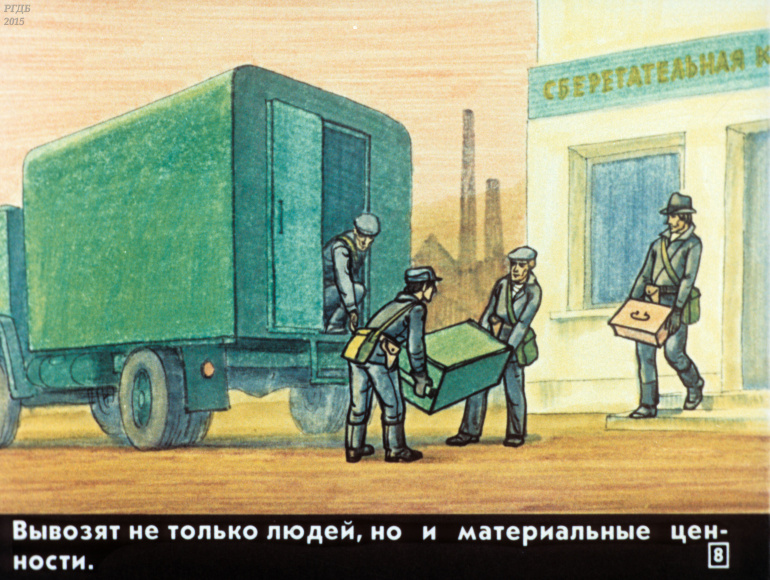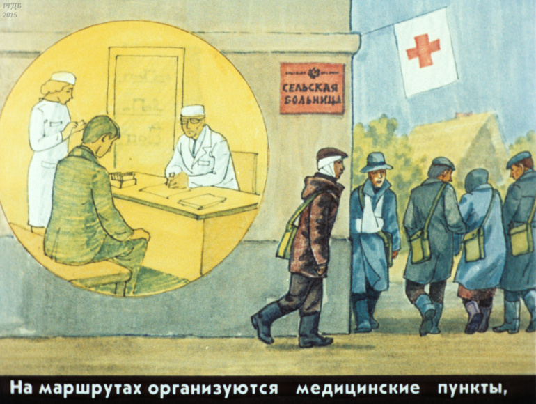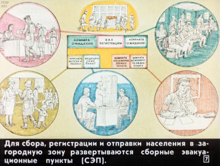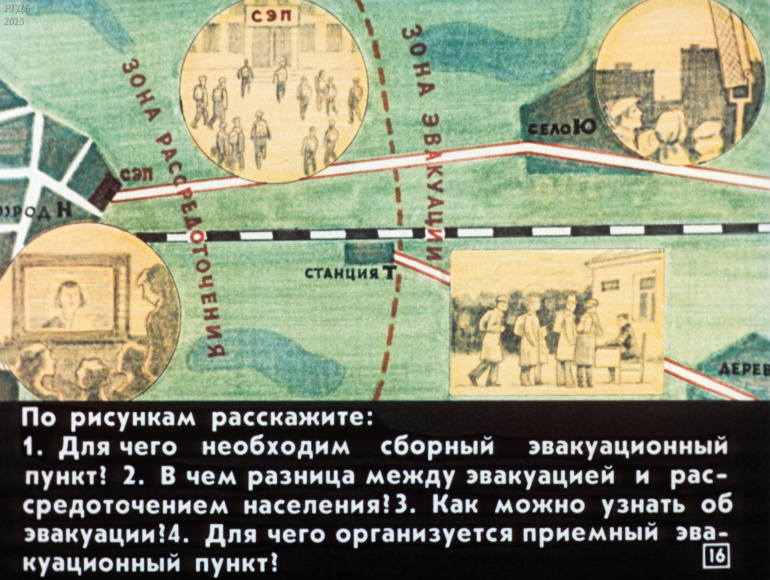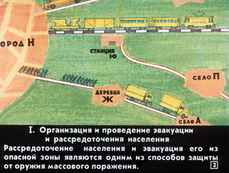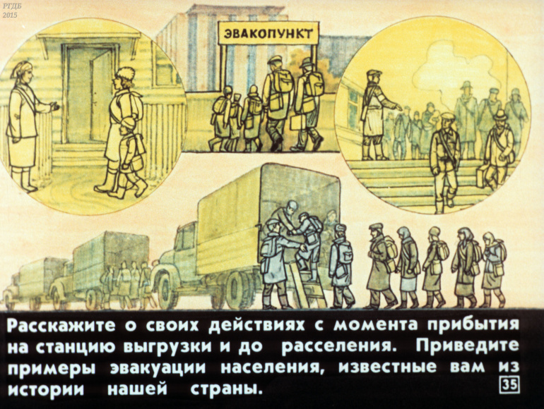 Диафильм "Эвакуация и рассредоточение городского населения".