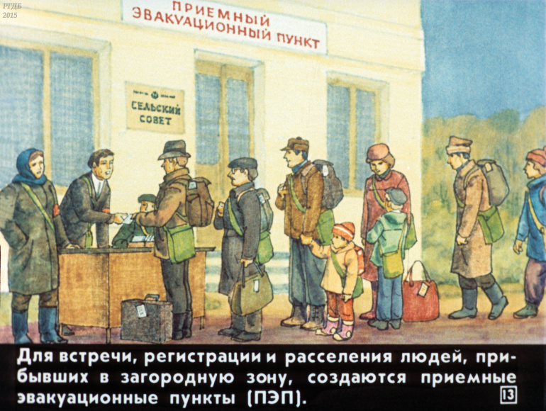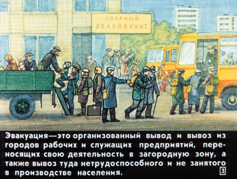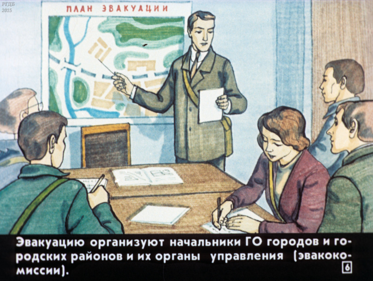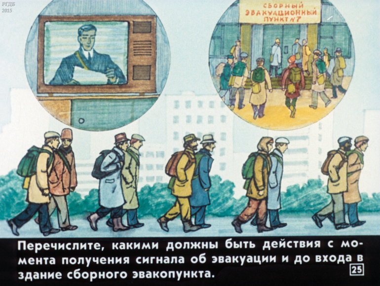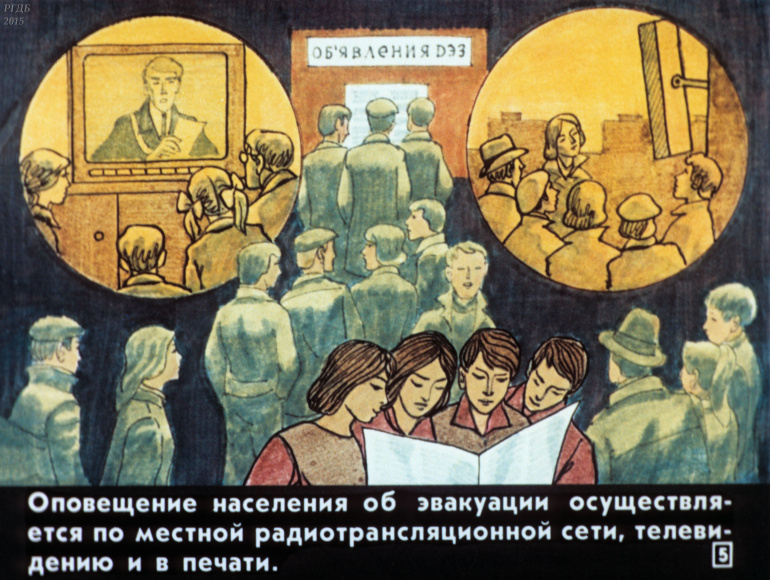 Оповещение населения об эвакуации осуществляется по местной радиотрансляционной сети, телевидению и в печати.