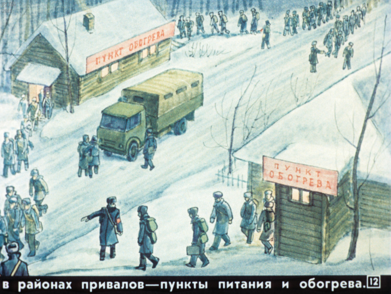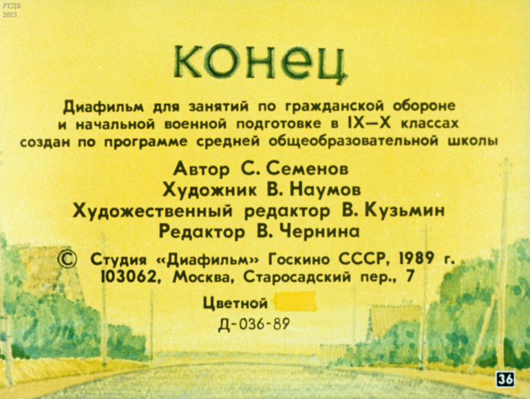 Диафильм для занятий по гражданской обороне и начальной военной подготовке в IX—X классах создан по программе средней общеобразовательной школы