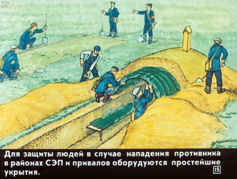 Для защиты людей в случае нападения противника в районах СЭП и привалов оборудуются простейшие укрытия
