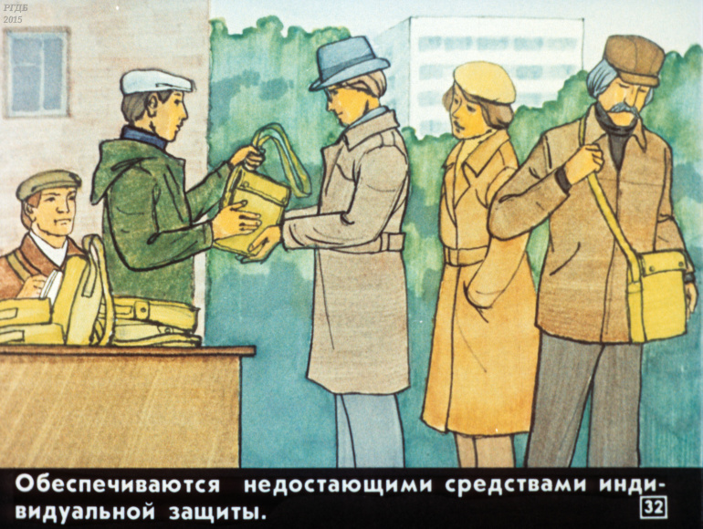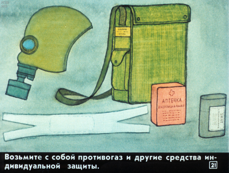 Возьмите с собой противогаз и другие средства индивидуальной защиты.