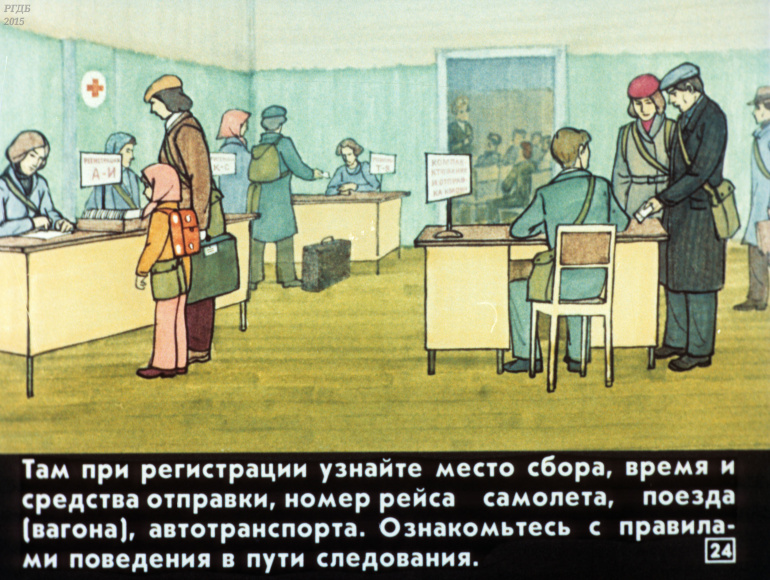 Там при регистрации узнайте место сбора, время и средства отправки, номер рейса самолета, поезда (вагона), автотранспорта. Ознакомьтесь с правилами поведения в пути следования.