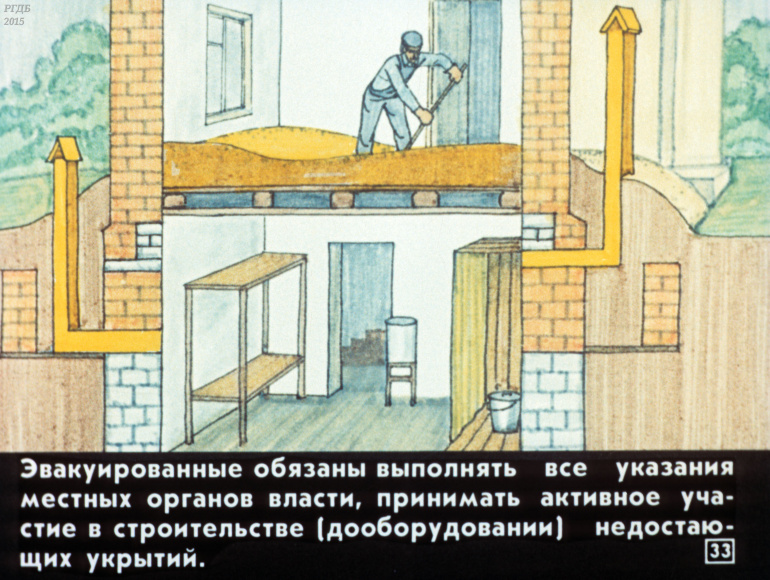 Эвакуированные обязаны выполнять все указания местных органов власти, принимать активное участие в строительстве (дооборудовании) недостающих укрытий.