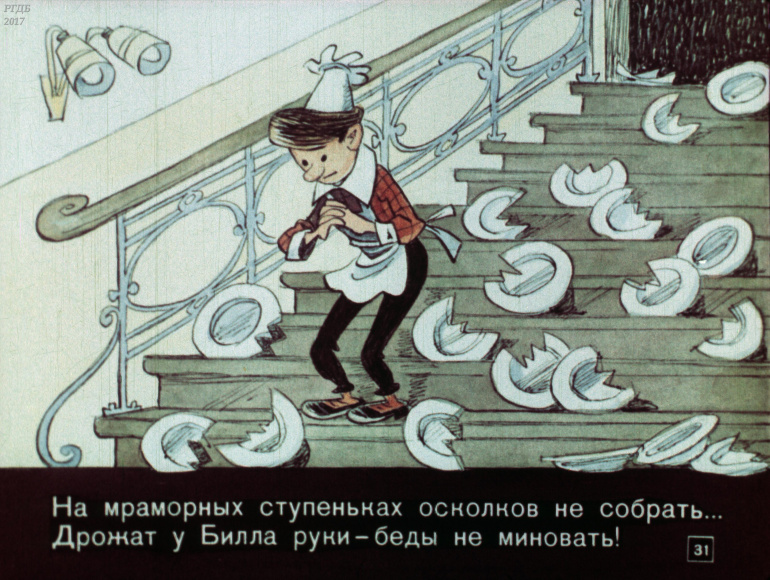 Билл-судомойка 1 Категория: ДиафильмыПросмотры: 525 В. Викторов. Диафильм "Билл-судомойка".Студия "Диафильм" Госкино СССР, 1966 год. Д-253-66, цветной 0-30 копеек