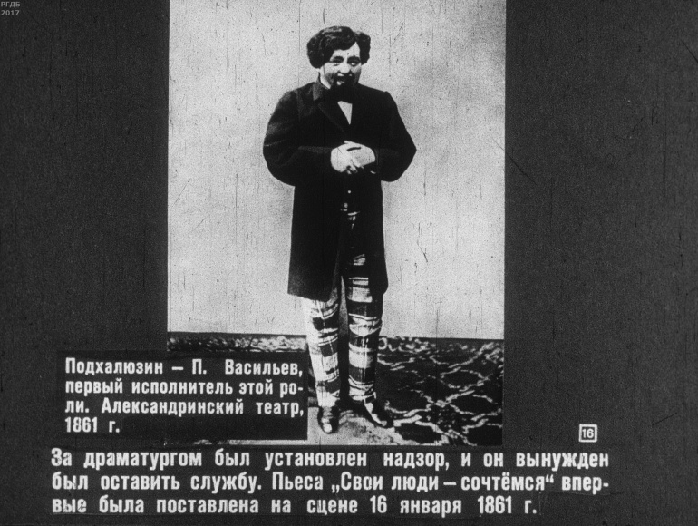 Великий русский драматург А. Н. Островский 3 Категория: ДиафильмыПросмотры: 732 Диафильм "Великий русский драматург А. Н. Островский (1823-1886)".Студия "Диафильм" Госкино СССР, 1959 год. Д-360-59, черно-белый 0-20 копеек