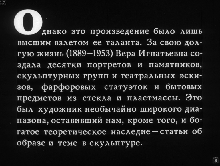 Вера Игнатьевна Мухина 0 Категория: ДиафильмыПросмотры: 525 Диафильм "Вера Игнатьевна Мухина".Студия "Диафильм" Госкино СССР, 1969 год. Д-375-69, черно-белый 0-20 копеек