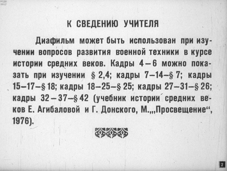 Военная техника в средние века 0 Категория: ДиафильмыПросмотры: 479 Диафильм "Военная техника в средние века".Студия "Диафильм" Госкино СССР, 1971 год. Д-208-77, черно-белый 0-20 копеек