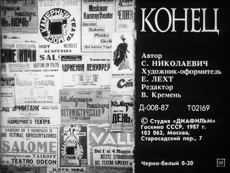 Воспоминание о камерном театре Александра Таирова и Алисы Коонен 0 Категория: ДиафильмыПросмотры: 504 Диафильм "Воспоминание о камерном театре Александра Таирова и Алисы Коонен".Студия "Диафильм" Госкино СССР, 1987 год. Д-008-87, черно-белый 0-20 копеек