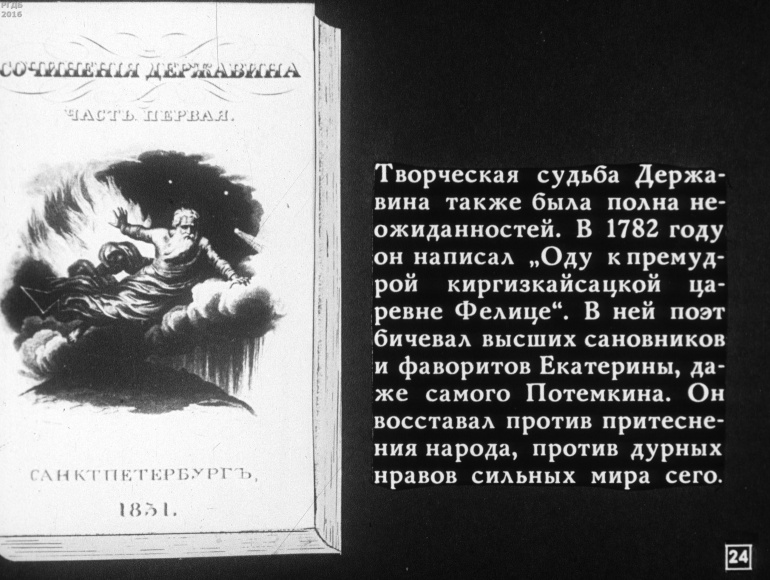 Гаврила Романович Державин (1743-1816) 2 Категория: ДиафильмыПросмотры: 377 Диафильм "Гаврила Романович Державин (1743-1816)".Студия "Диафильм" Госкино СССР, 1985 год. Д-291-85, черно-белый 0-20 копеек