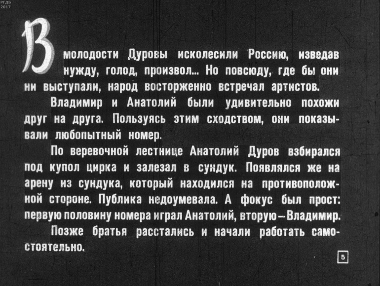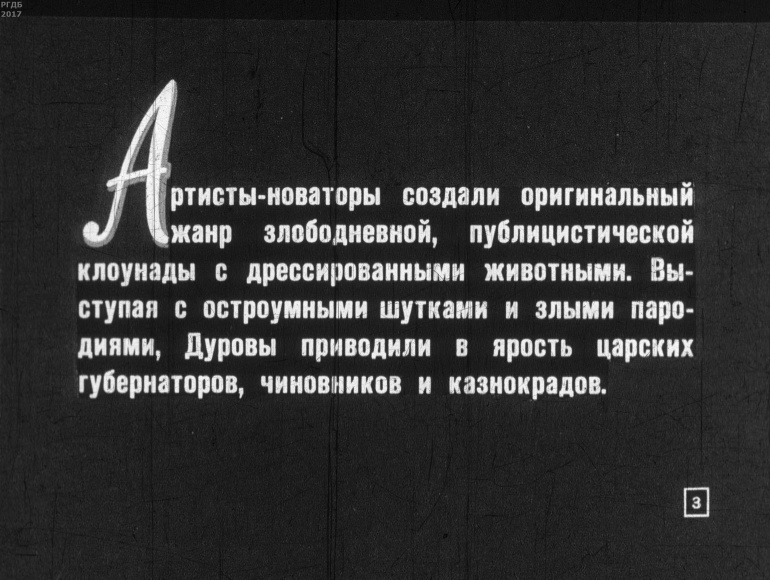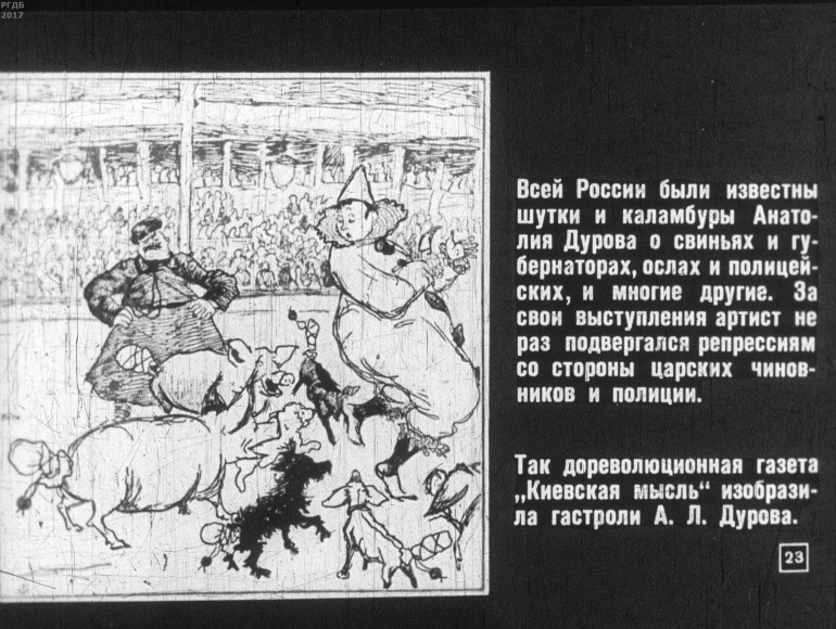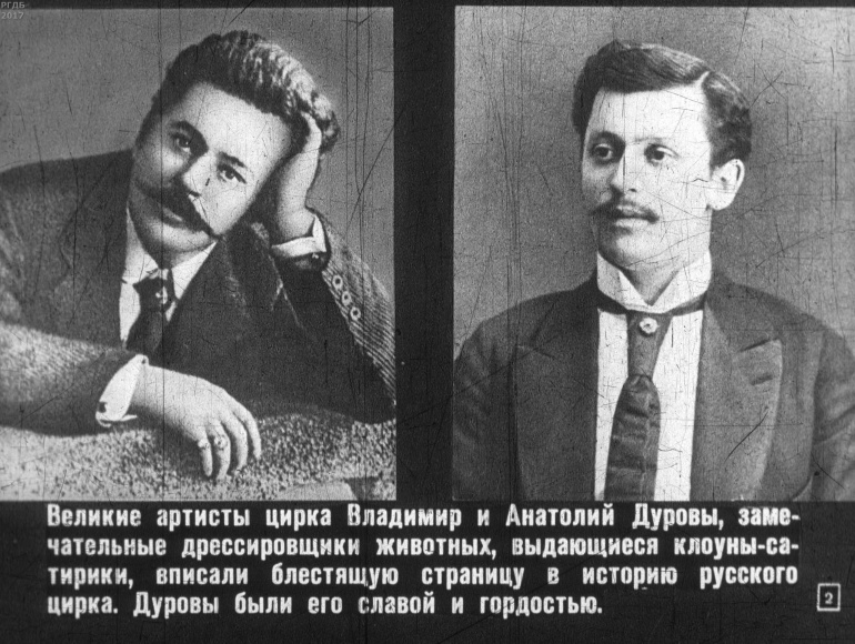 Гордость русского цирка 0 Категория: ДиафильмыПросмотры: 458 Диафильм "Гордость русского цирка". Владимир и Анатолий ДуровыСтудия "Диафильм" Госкино СССР, 1963 год. Д-353-63, черно-белый 0-20 копеек