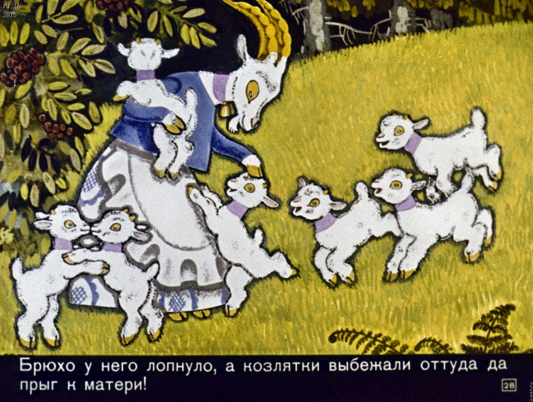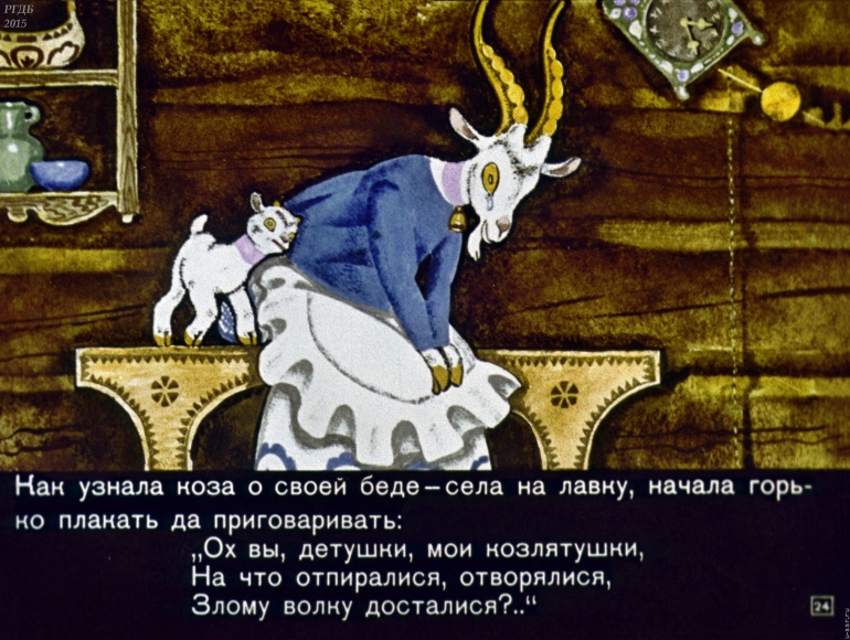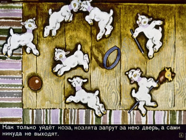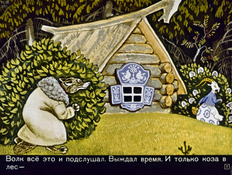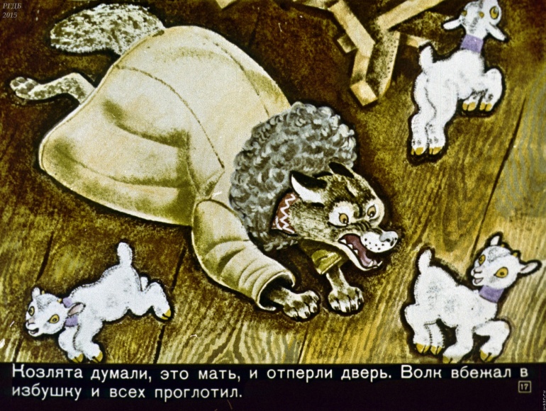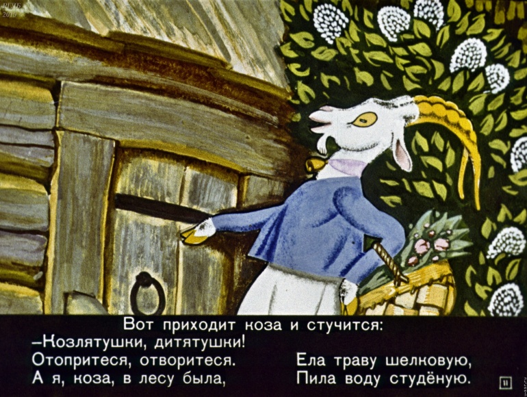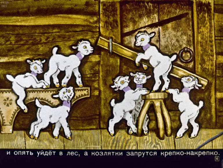 Волк и семеро козлят 1 Категория: ДиафильмыПросмотры: 2 399 Диафильм "Волк и семеро козлят". Русская народная сказкаСтудия "Диафильм", 1971 год. Д-195-71, цветной 0-30 копеек