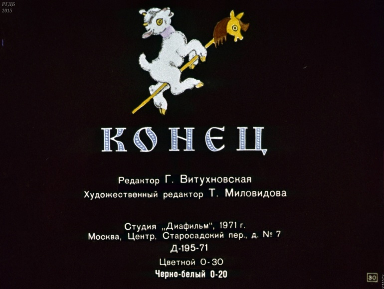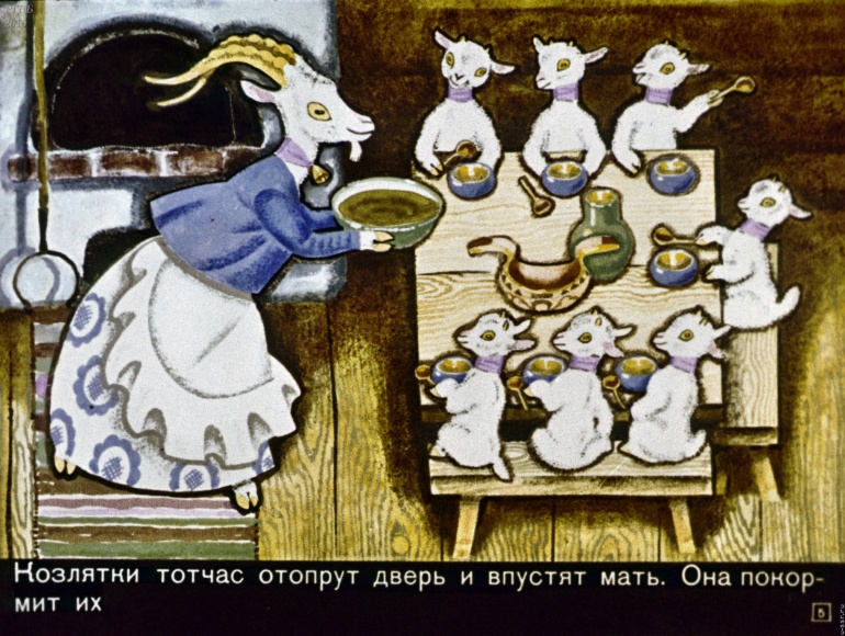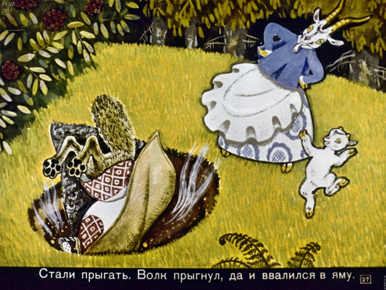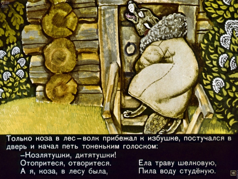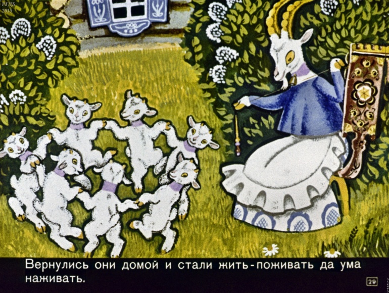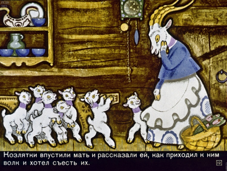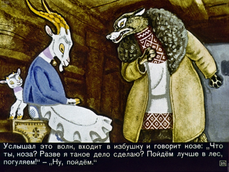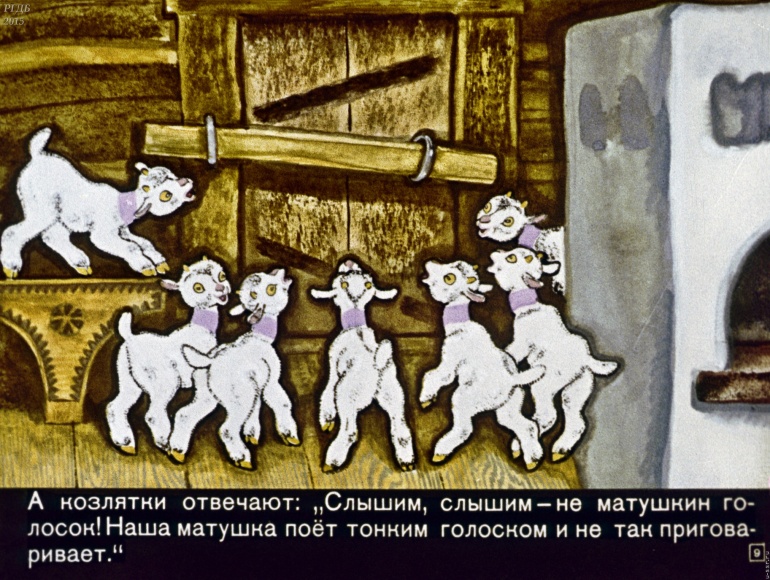 Волк и семеро козлят 1 Категория: ДиафильмыПросмотры: 2 399 Диафильм "Волк и семеро козлят". Русская народная сказкаСтудия "Диафильм", 1971 год. Д-195-71, цветной 0-30 копеек