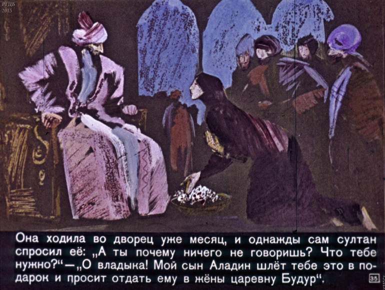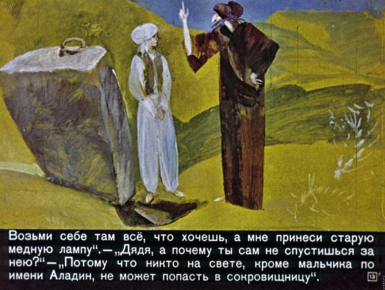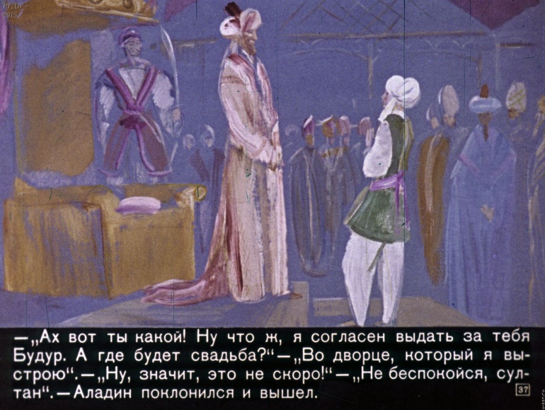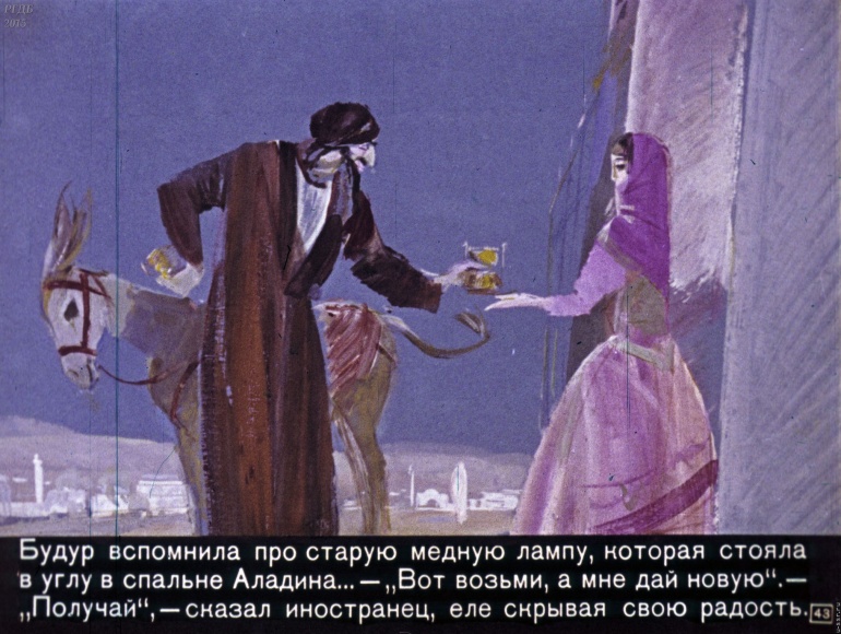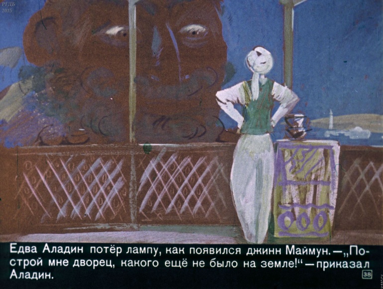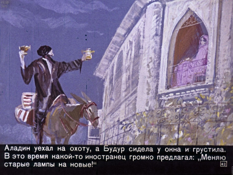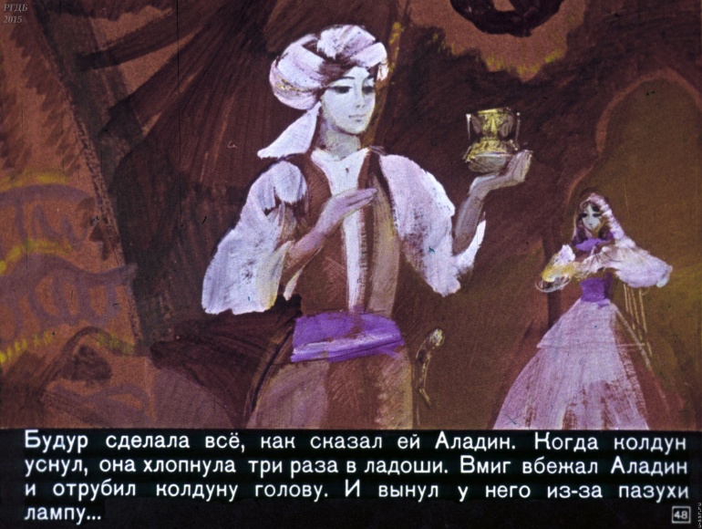Волшебная лампа Аладина 3 Категория: ДиафильмыПросмотры: 1 525 Диафильм "Волшебная лампа Аладина". Студия "Диафильм", 1973 год. Д-071-73, цветной 0-30 копеек