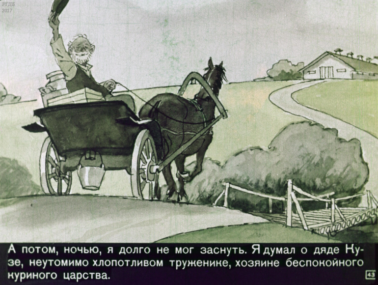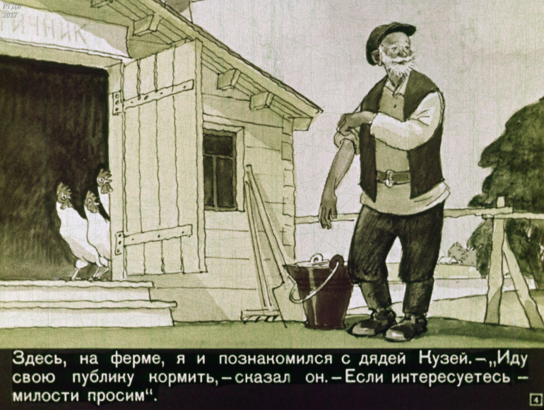 Дядя Кузя - куриный начальник 0 Категория: ДиафильмыПросмотры: 628 В. Астафьев. Диафильм "Дядя Кузя - куриный начальник".Студия "Диафильм" Госкино СССР, 1969 год. Д-291-69, цветной 0-30 копеек