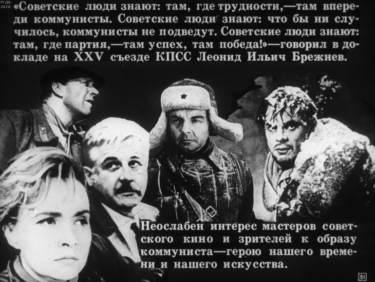 Идущие впереди 1 Категория: ДиафильмыПросмотры: 315 Диафильм "Идущие впереди". Образ коммуниста в советском кинематографеСтудия "Диафильм" Госкино СССР, 1976 год. Д-108-76, черно-белый 0-20 копеек