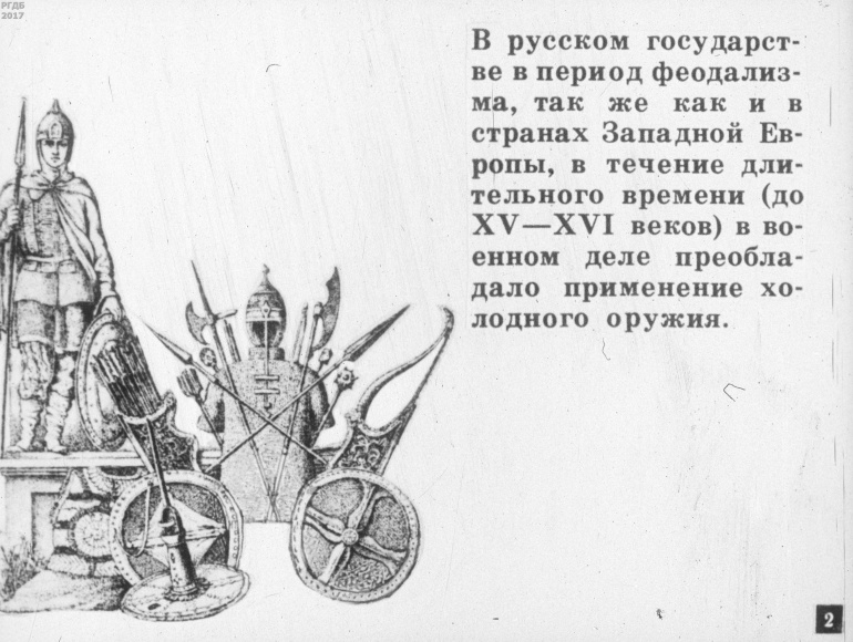 Из истории русской военной техники в период феодализма 0 Категория: ДиафильмыПросмотры: 425 Диафильм по истории "Из истории русской военной техники в период феодализма".Студия "Диафильм" Госкино СССР, 1984 год. Д-069-84, черно-белый 0-20 копеек