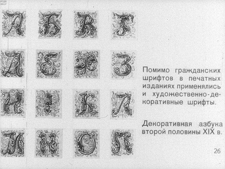 История шрифта 4 Категория: ДиафильмыПросмотры: 558 Диафильм "История шрифта".Студия "Диафильм" Госкино СССР, 1964 год. Д-48-64, черно-белый 0-20 копеек