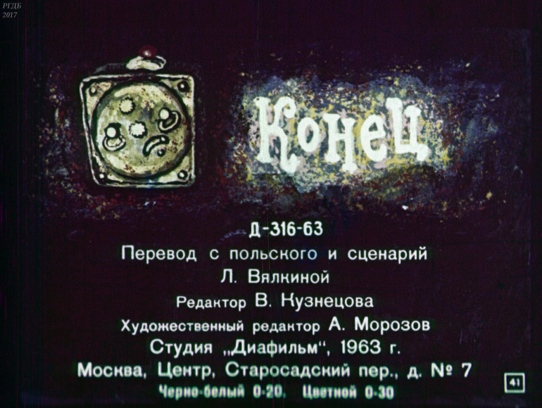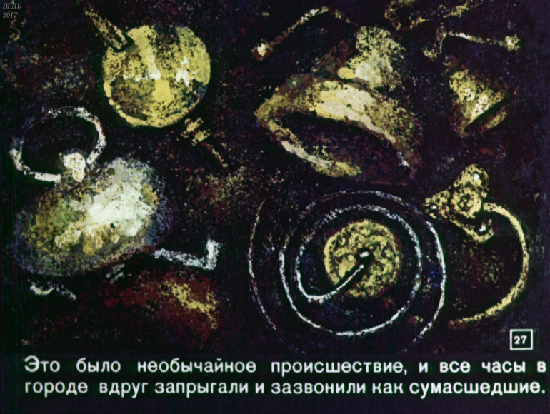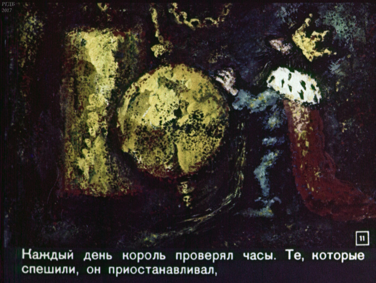Король часов 0 Категория: ДиафильмыПросмотры: 320 Диафильм "Король часов". По сказке Иржи АфанасьеваСтудия "Диафильм" Госкино СССР, 1963 год. Д-316-63, черно-белый 0-20 копеек