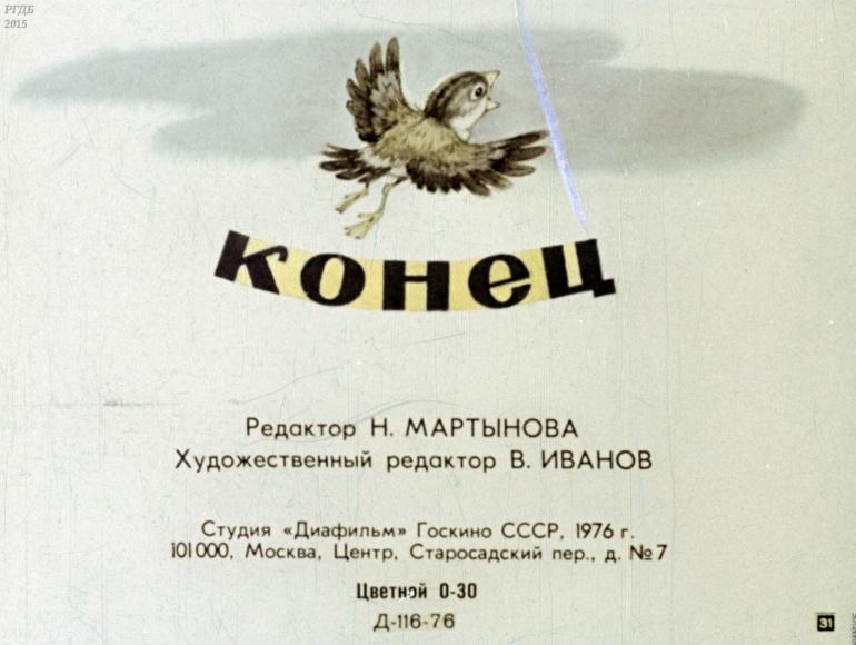 Воробьишко 3 Категория: ДиафильмыПросмотры: 3 082 М. горький. Диафильм "Воробьишко".Студия "Диафильм" Госкино СССР, 1976 год. Д-116-76, цветной 0-30 копеек
