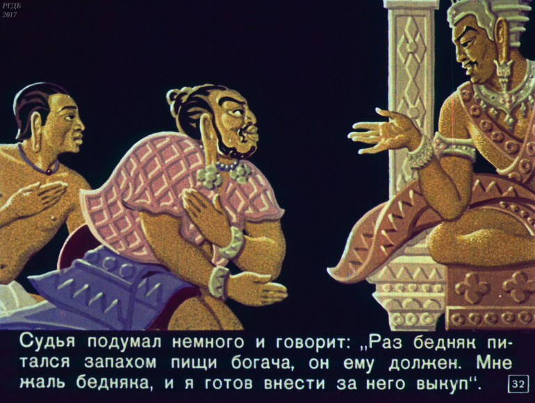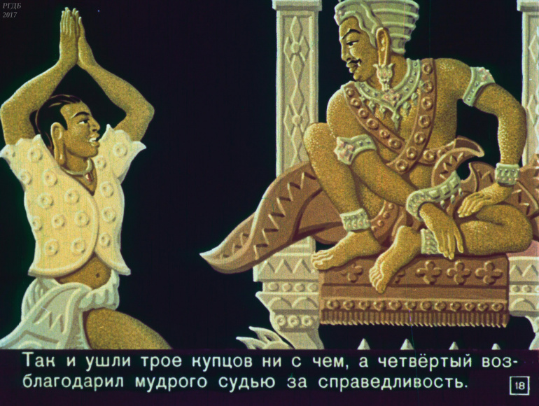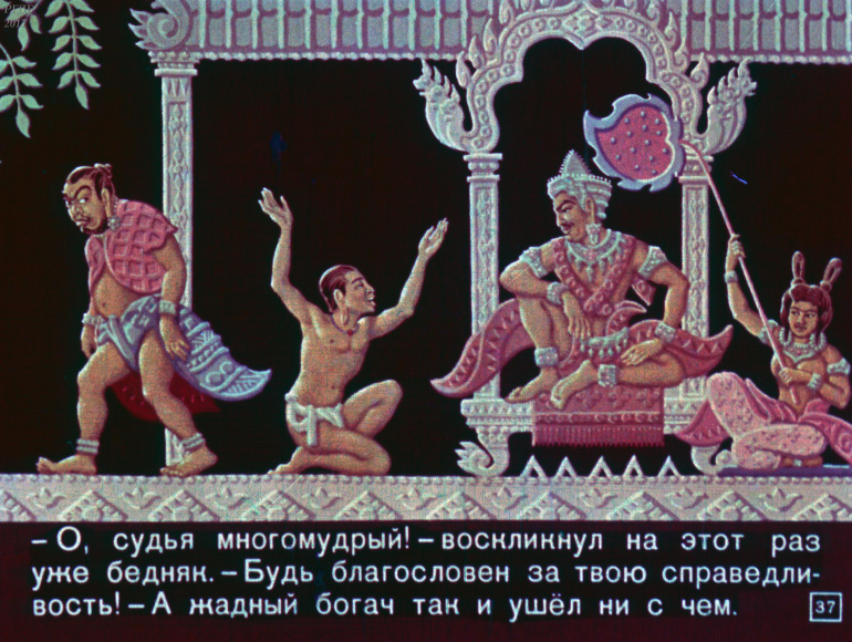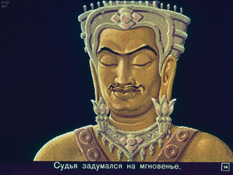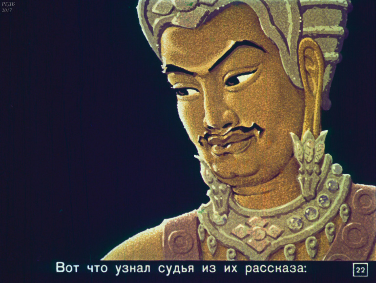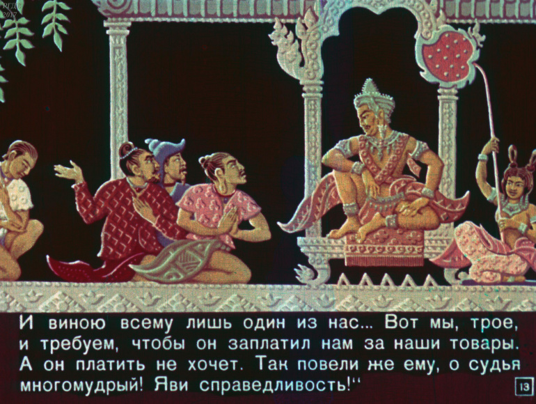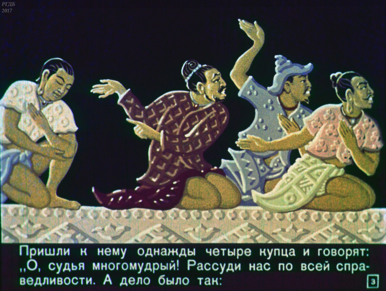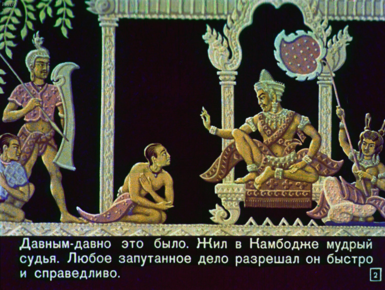 Мудрый судья 0 Категория: ДиафильмыПросмотры: 415 Диафильм "Мудрый судья". Из сказок КамбоджиСтудия "Диафильм" Госкино СССР, 1965 год. Д-451-65, цветной 0-30 копеек